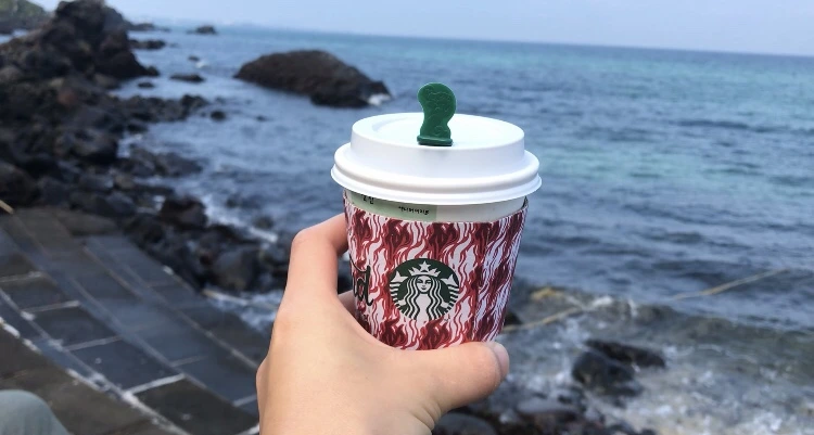 애월 근처에 있는 스타벅스에서 드라이브 쓰루를 해서, #한림해안도로 로 왔다.