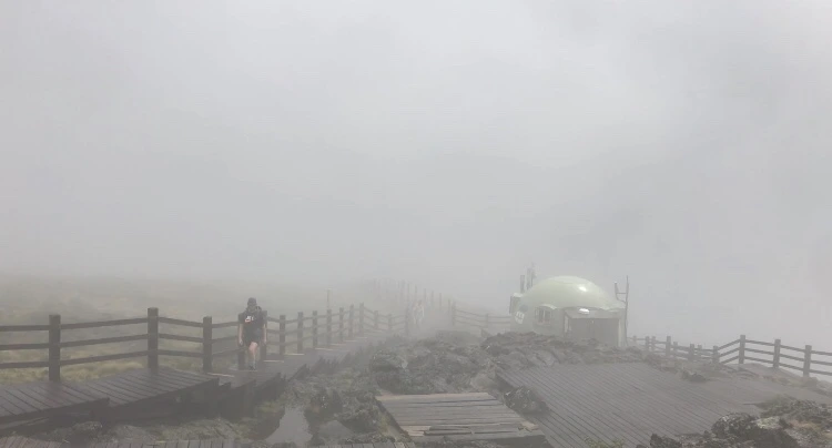 진달래 대피소도 공사 중이라, 김밥도 비 맞으며 먹었다. 안개뿐인 한라산이었지만,