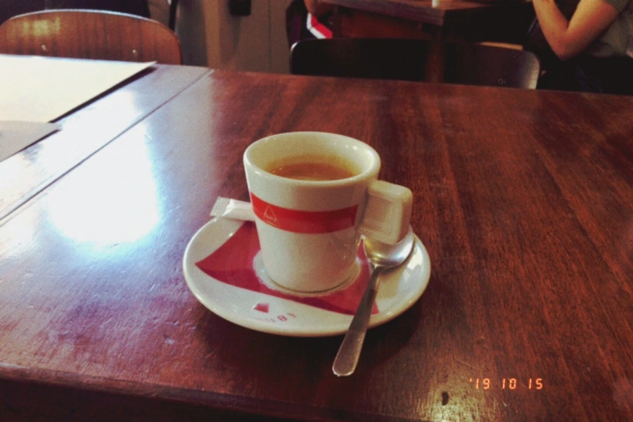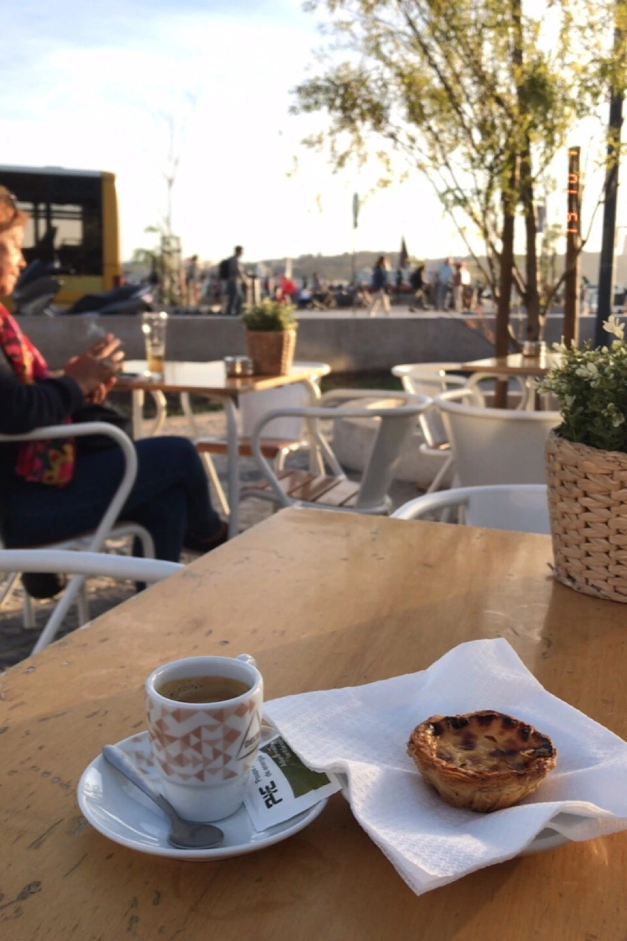 한 참을 있다가, 바람이 점점 추워져서 몸을 좀 녹이고 싶어서 야외 카페로 와서 따뜻한 커피와 나타를 시켰다.