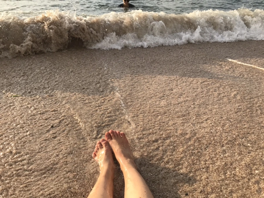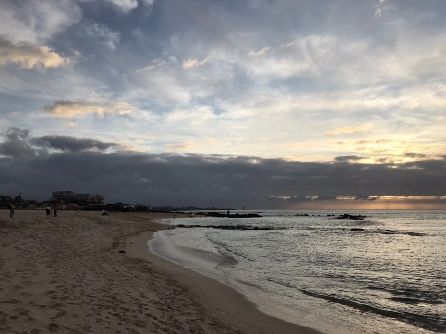 슬슬 해가 지려는 타이밍에 들어가니까, 더 좋았다. 바닷물이 반짝반짝.