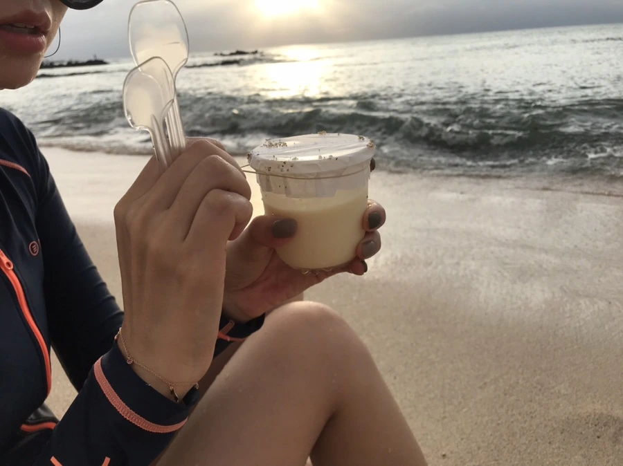 30분 이내에 먹으라고 했는데, 노느라고 30분 지나고 먹으니까 푸딩이 거의 물이 되었다.