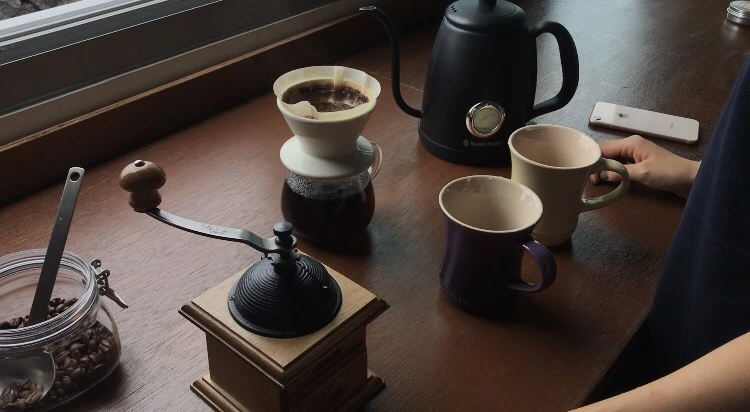 블루투스 오디오로 잔잔한 음악 틀어 놓고, 커피 내리기.