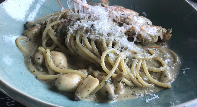 딱새우 취나물 크림 파스타 대에에에에에에에에박