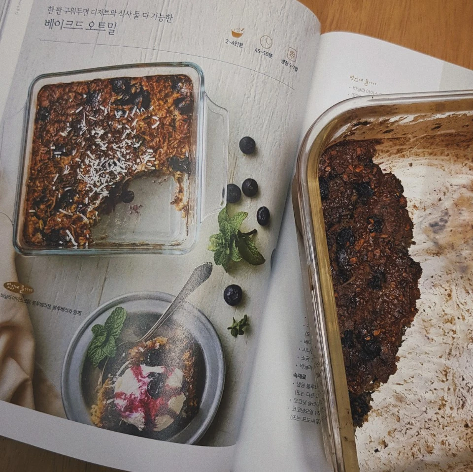 베이크드 오트밀은 겉(위쪽)은 바삭하고 안 쪽은 촉촉, 쫄깃한 빵과 떡 사이의 질감이다. 치아바타와 조금 유사한 면도 있고, 약밥의 식감과도 비슷한 면이 있다. 그 둘을 섞어 놓은 것 같기도 하고, 또 위쪽은 쿠키 같다. 블루베리와 치아시드가 톡톡 터져서 그걸 씹는 재미도 있다. 그리고 정말 단데 그 단 맛에 끌리는 맛이다. 그리고 치아시드 덕분인지 정말 포만감이 장난이 아니다. 이걸 먹고는 저녁에 보쌈을 먹을 거였는데 단 3점만 먹고 딱 젓가락을 내려놓을 수 있었다.
