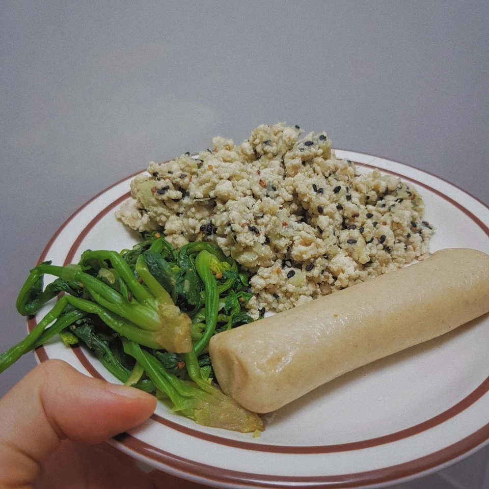 tip! 1. 에서 두부를 면포에 넣어 물기를 꼭 짜주고 전분가루를 넣고 스테이크 형태로 빚어서 먹어도 맛있다.