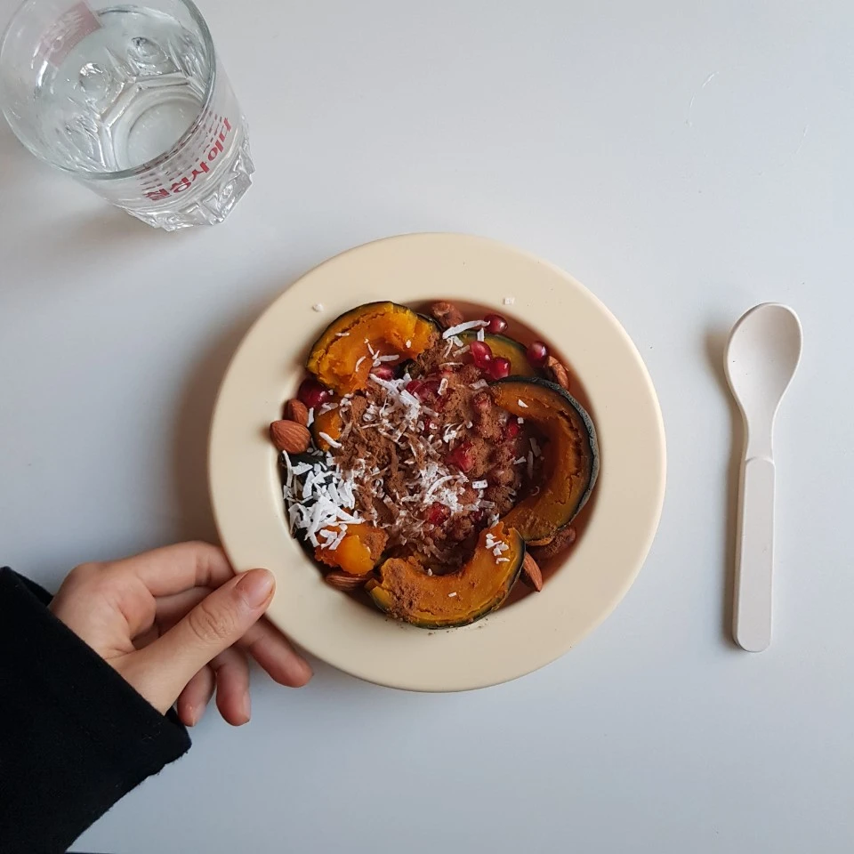 오늘 아침 식단 : 밤호박 130g, 석류, 코코넛 플레이크, 아몬드 10개, 수제 비건 요구르트 100ml, 시나몬 가루 이제 밀리지 않고 식단일기를 쓰고 운동을 하는 일상으로 되돌아가려고 한다. 한 주 동안 푹 쉬고 방황한 것을 마치고, 조금씩 다시 일기 쓰듯 매일 글을 쓰고, 사진을 보정하고, 아침저녁으로 운동을 하고, 하고 싶은 것이 넘쳐나서 행복해하는 현재를 사는 나를 되찾으려 한다. 눈이 부시게.
