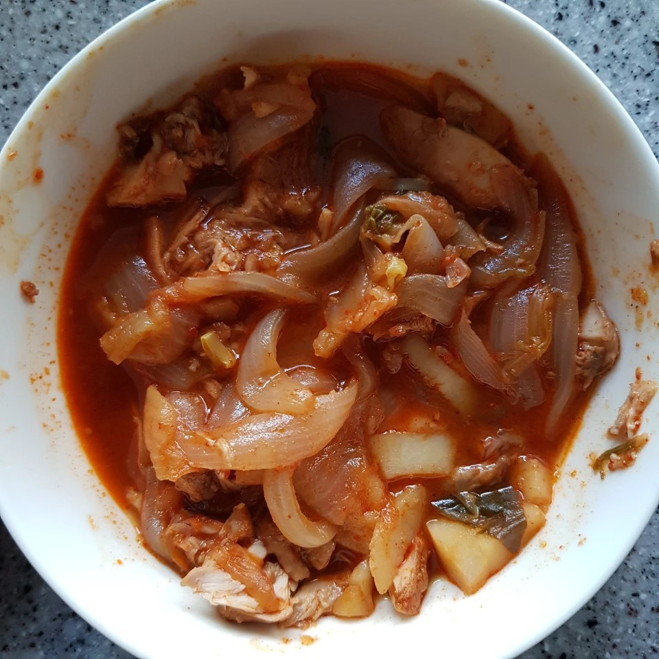 아침에 늦게 일어나거나 일이 생겨서 밥시간이 늦어지게 되면 전체적인 루틴이 흔들리고, 계획을 수정해야 해서 그게 싫어서 저녁에 미리 아침에 10분 이내의 아주 간단한 조리만 하면 바로 먹을 수 있도록, 준비해두고 자는데, 어젯밤에는 딱히 끌리는 메뉴도 없고, 마음속으로 아주 간편한 #훈제오리 김치 쌈밥을 먹을까 하고 생각만 해두고 잤는데 아침에 일어나 보니 어제저녁에 가족들이 먹고 남은 닭볶음탕이 있길래 운동을 더하고 이걸 먹는 게 효율적이고 행복하겠다 싶어서 아주 오랜만에 집밥을 먹었다. 그리고 점심에도 먹었다.