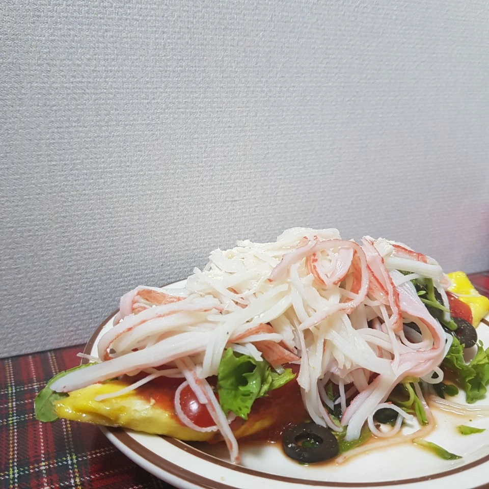 소고기를 먹을 줄 알았다가 먹게 된 메뉴라서 좀 아쉬웠지만, 게맛살을 더 이상 놔둘 수가 없어서 별다른 고민 없이 픽했다. 게맛살은 언제나 옳다. 그리고 생각보다 토마토소스와의 조합도 잘 어울린다. 어린잎채소가 프레시 함을 더해주어서 샐러드 피자를 먹는 듯한 기분을 가져다줬다. 피자 모양이 왜 동그랗지 못하냐면 달걀물에 당근과 대파를 넣어야 하는 것을 모르고 중간에 넣어서 달걀말이로 변경했기 때문이다. 근데 이것도 나름대로 맛이 있었다. 모양도 생각보단 예뻤다. 크래미를 밑에 얹고 어린잎채소와 기타 토핑들을 위에 얹었으면 더 보기 좋았을 것 같다는 생각에는 변함없지만 말이다. 외할머니께서 부모님과 함께 올라오셔서 가족들은 베란다에서 삼겹살을 구워 먹었고, 나는 식탁에서 이 피자를 먹었다. 빅뱅이론을 보면서 행복하게 웃으면서 먹으니까 그보다 더 즐거울 수 없었다.