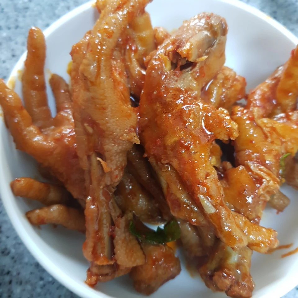 운동이 끝나고 나서 닭발을 다른 냄비로 옮겨서 닭발이 잠기도록 물을 반쯤 붓고 고추장과 간장, 알룰로스 올리고당, 매실액, 다진 마늘, 생강가루, 양파가루, 고춧가루, 간장을 넣고 졸였다. 맛이 나지 않아서 엄마가 중간에 양념을 추가적으로 더 넣어주셨다. 생강이 많이 들어가서 쓴 맛이 난다고 하셨는데 양념이 다 되고 나서는 그냥 맛있었다. 매콤 달콤 쫄깃! 짜지도 않고 딱 좋은 국물 있는 닭발 맛이었다!