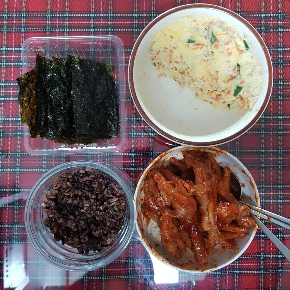 점심에는 어제저녁에 아침 식사로 준비했던 샐러드를 먹겠다는 생각이 그냥 스쳐 지나가고 아침 밥상을 고대로 옮겨왔다. 다만 밥을 100g으로 줄이고 피자치즈는 먹지 않았다. 밥을 일부러 줄인 건 아니고, 소분하는데 양이 애매하게 부족했다. 그래서 덜 먹었는데 그러길 잘했다 싶다. 다만, 다음에 또 먹는다면 달걀을 2개만 하고 우유 대신 무가당 두유를 넣어서 더 고소하게 만들겠다. 그리고 지금까지도 배가 부른 걸 생각하니, 닭발의 개수를 세가면서 먹는 것이 필요할 것 같다. 얼마나 먹는지 인지하지 못한 채로 계속 먹어서 배가 부르다.