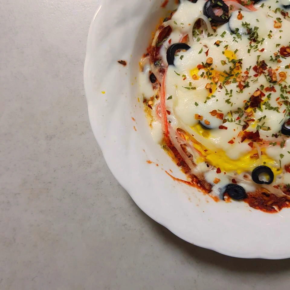 와우! 예상대로 밤호박은 달달하고 토마토소스는 감칠맛과 특유의 향이 입맛을 돋워주고, 올리브는 씹는 맛을 더해주었고, 게맛살은 감칠맛, 달달하고 게를 먹는 듯한 향과 맛을 내주었고, 잘게 찢은 덕에 게살을 실제로 발라놓은 것 같은 착각이 들게 했다. 달걀은 포만감을 더해주고, 모든 재료를 조화롭게 어우러지도록 해주었고, 치즈의 짭짤한 풍미, 크러쉬드 레드페퍼의 매콤함까지 더 해지니 밀가루 피자보다도 훨씬 더 만족스러운 피자를 즐길 수 있었다. 다만, 밤호박이 과숙성되어서 약간의 씁쓰름한 맛이 나서 아쉬웠다.