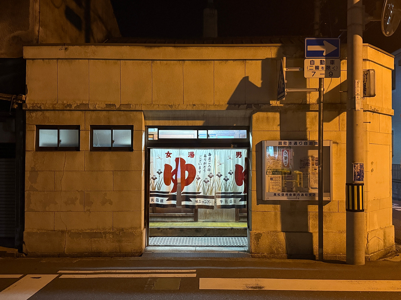 다카마쓰 여행 1일차, 그 옛 기억을 따라 한적한 골목의 센토(일본 대중목욕탕)를 찾았다. 꾸밈없는 일본 소도시의 풍경 속 고요한 밤거리를 자전거를 타고 귀가하는 사람들, 간혹 휙 지나가는 승용차 소리만이 정적을 깼다. 마치 시간이 느릿하게 흘러가는 듯한 풍경을 지나 이 앞에 도착했다.