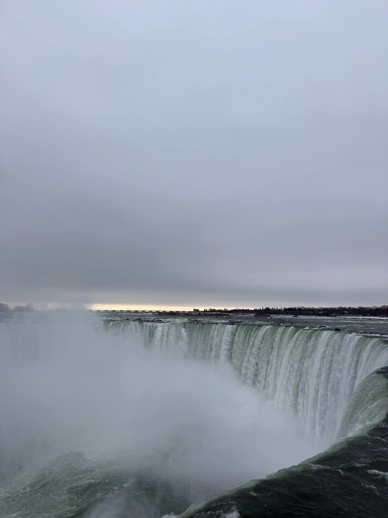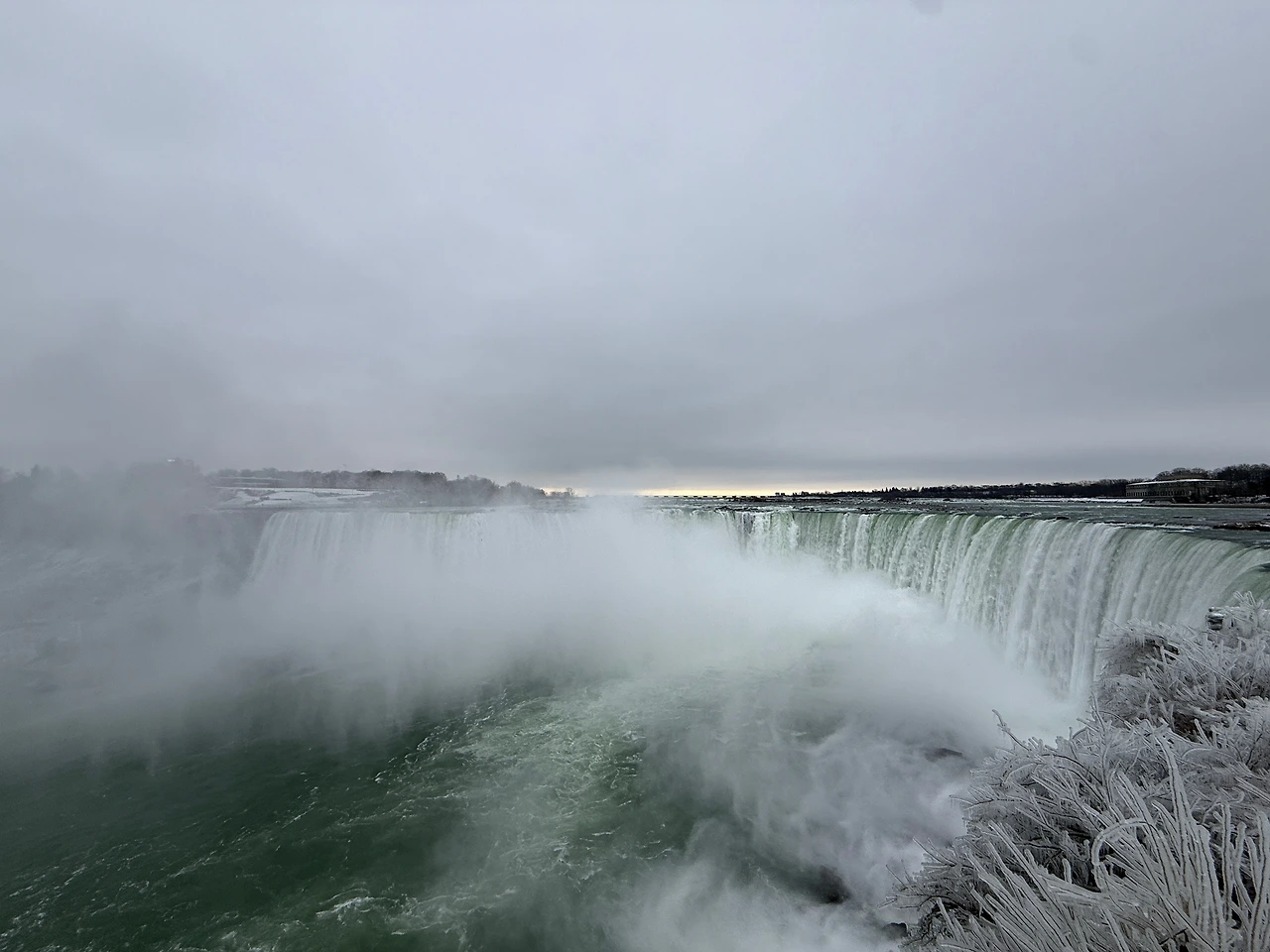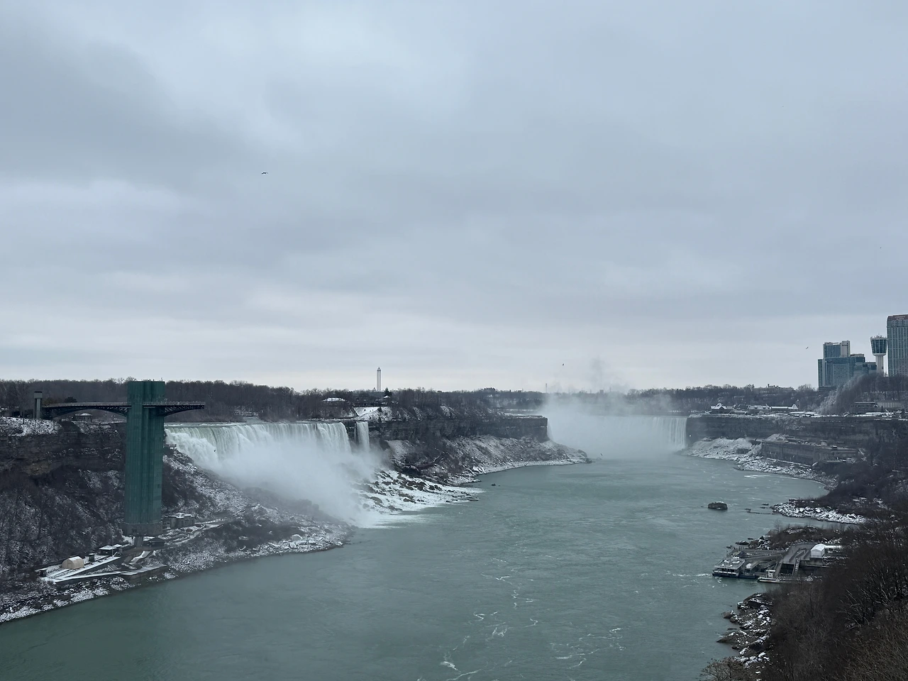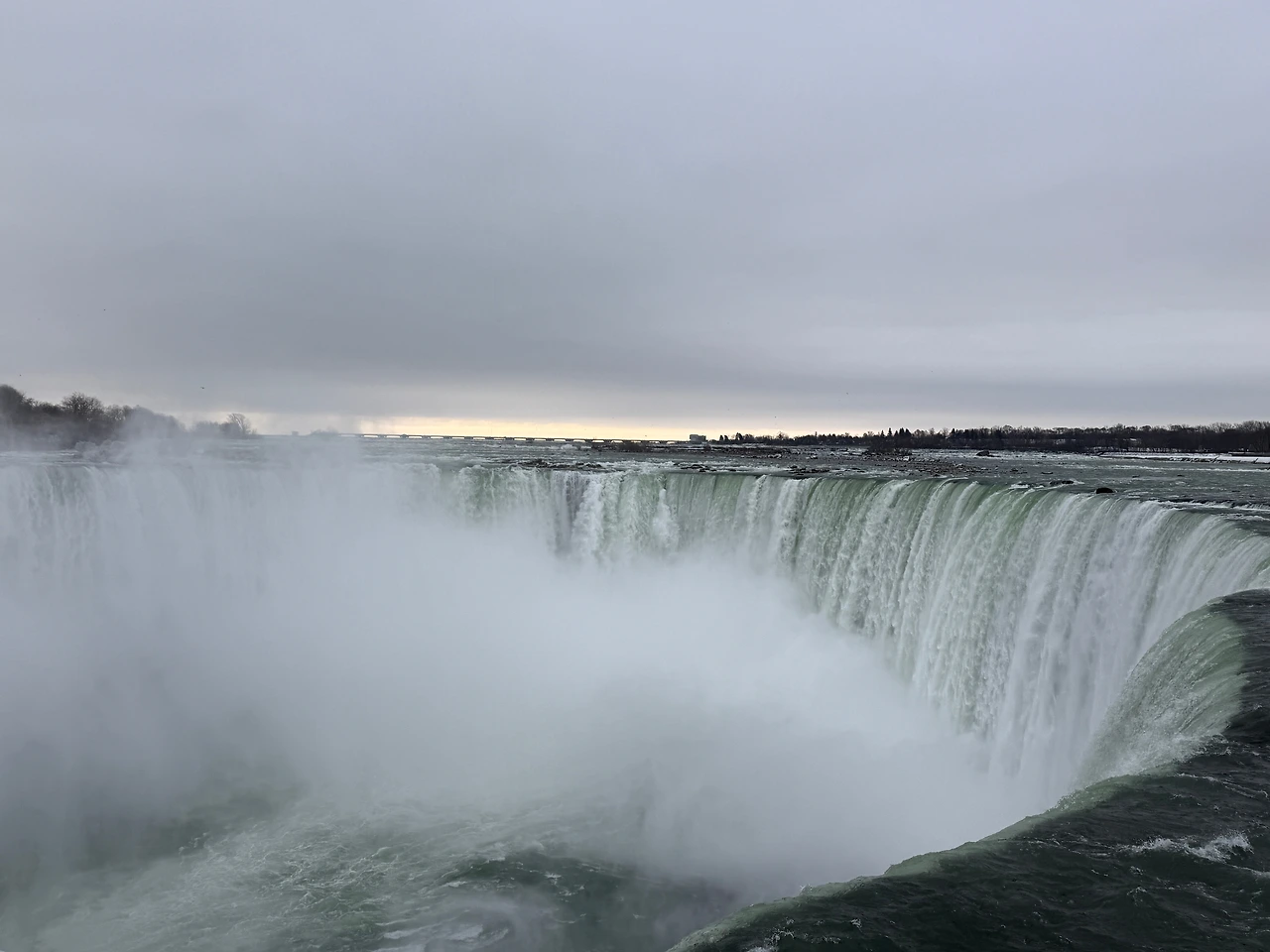 수증기가 안개처럼 자욱해 시야가 뚜렷하지 않았던 점은 아쉬웠지만 미국 쪽 브라이덜 베일 폭포, 아메리칸 폭포와는 비교할 수 없는 압도적인 물줄기와 힘은 여전히 웅장했다. 그러나 충분히 대비하지 못한 폭포에서 부는 칼바람과 매서운 추위가 감상을 온전히 즐기기 어렵게 만들 만큼 거셌다.