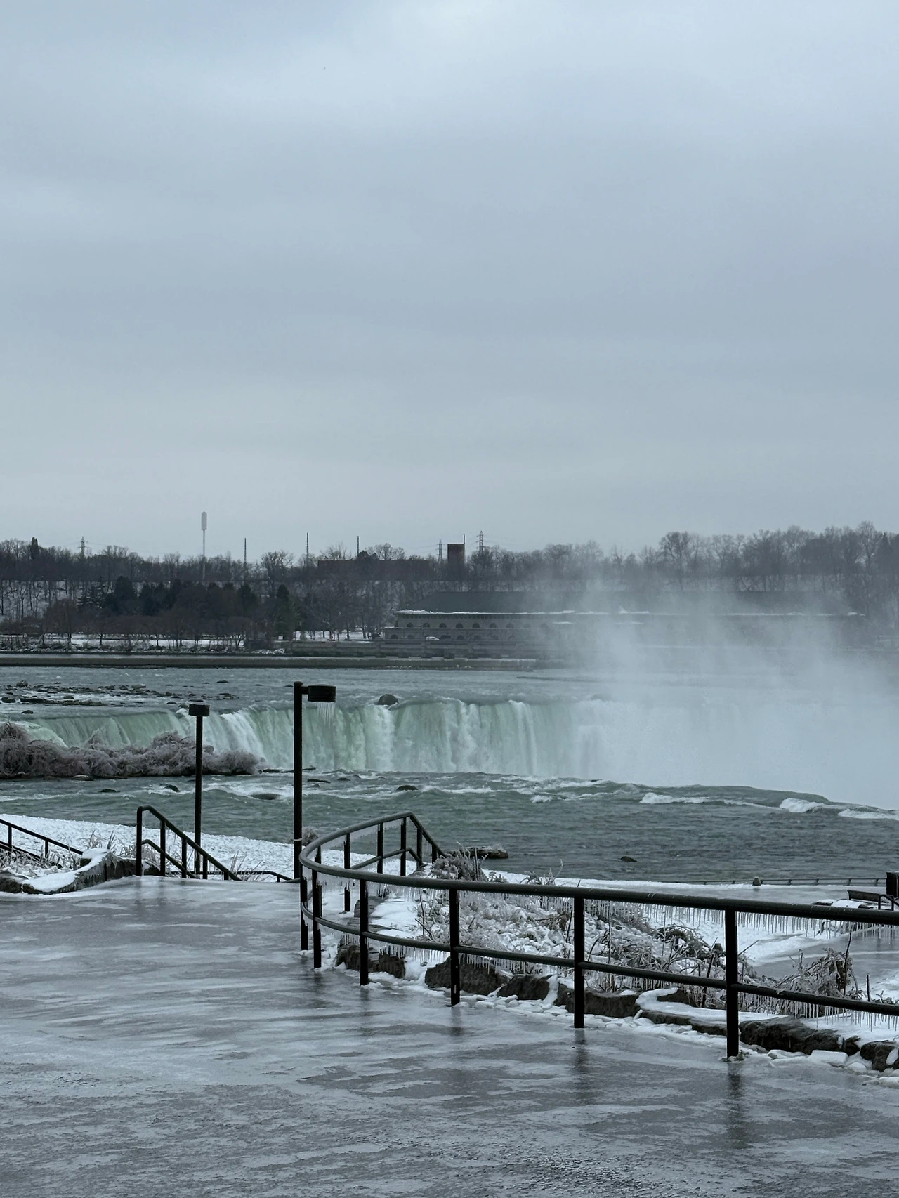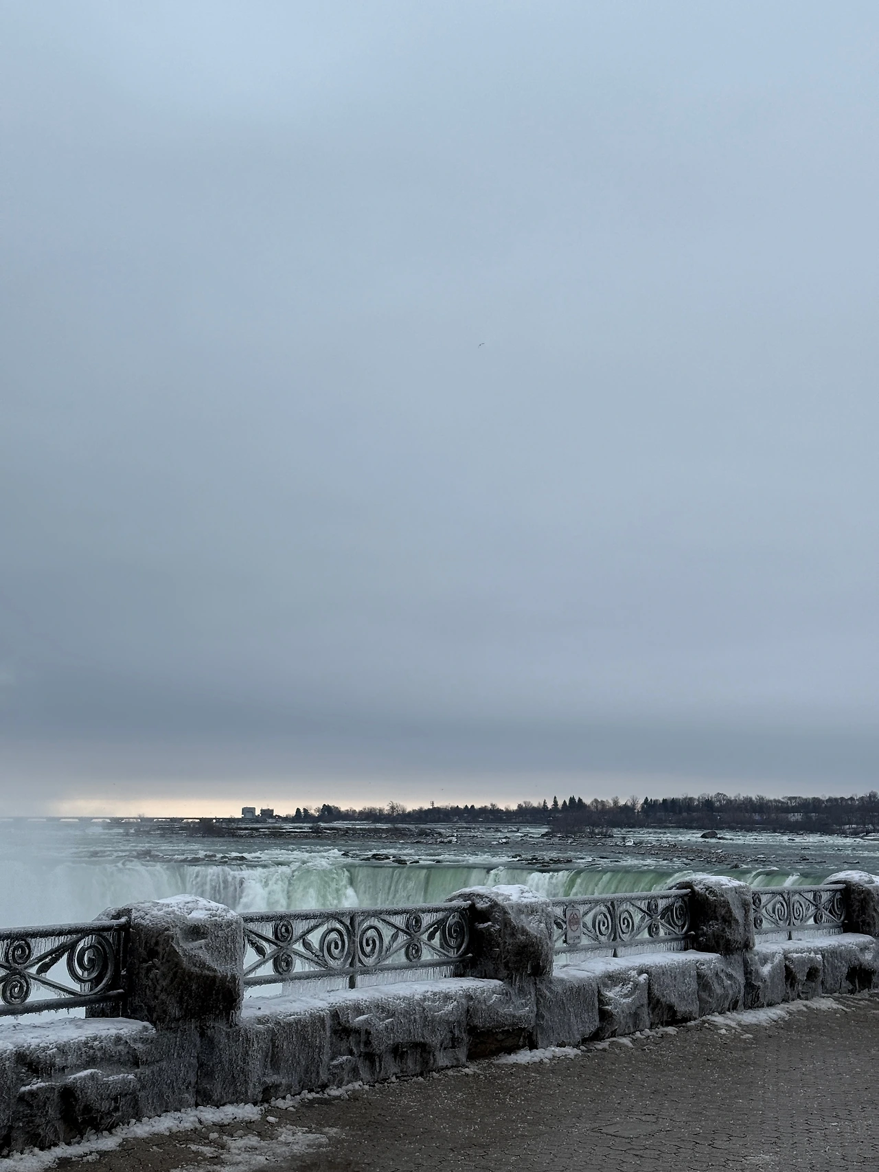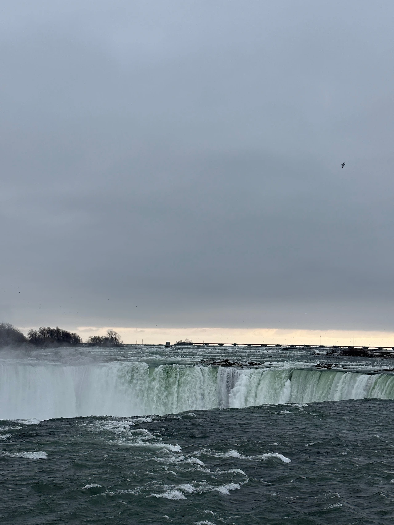 수증기가 안개처럼 자욱해 시야가 뚜렷하지 않았던 점은 아쉬웠지만 미국 쪽 브라이덜 베일 폭포, 아메리칸 폭포와는 비교할 수 없는 압도적인 물줄기와 힘은 여전히 웅장했다. 그러나 충분히 대비하지 못한 폭포에서 부는 칼바람과 매서운 추위가 감상을 온전히 즐기기 어렵게 만들 만큼 거셌다.