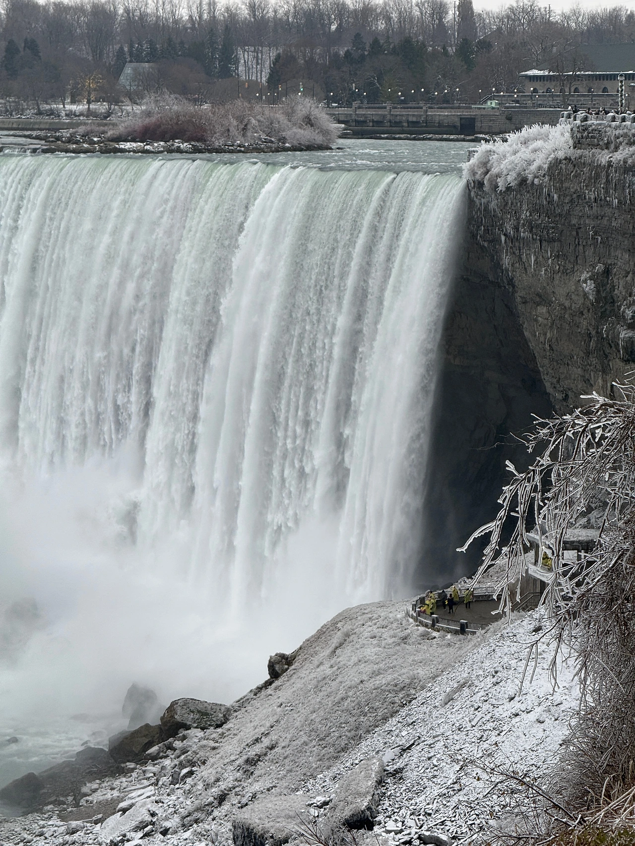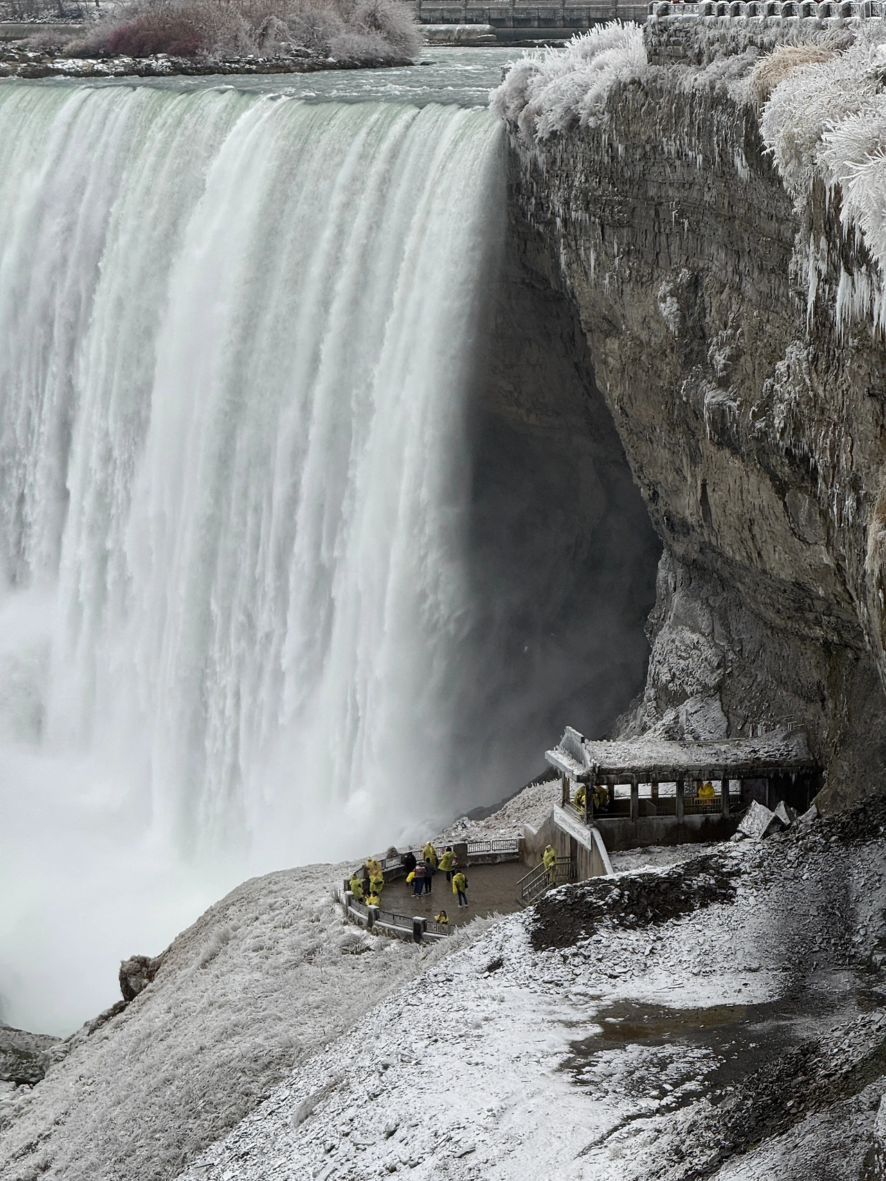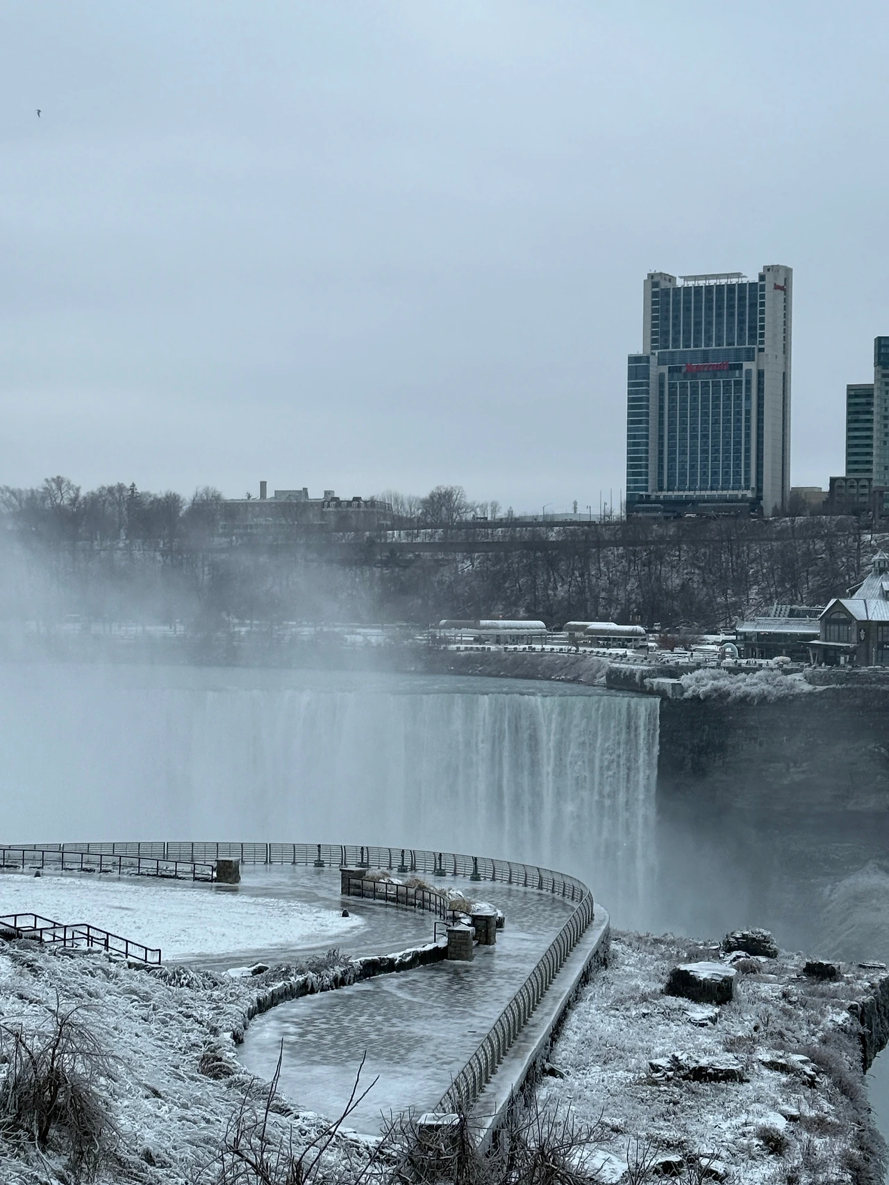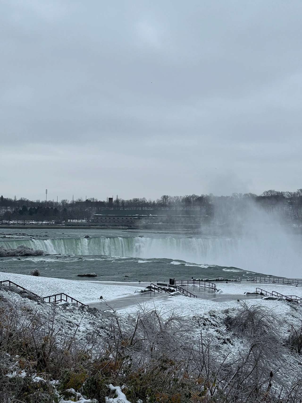 수증기가 안개처럼 자욱해 시야가 뚜렷하지 않았던 점은 아쉬웠지만 미국 쪽 브라이덜 베일 폭포, 아메리칸 폭포와는 비교할 수 없는 압도적인 물줄기와 힘은 여전히 웅장했다. 그러나 충분히 대비하지 못한 폭포에서 부는 칼바람과 매서운 추위가 감상을 온전히 즐기기 어렵게 만들 만큼 거셌다.