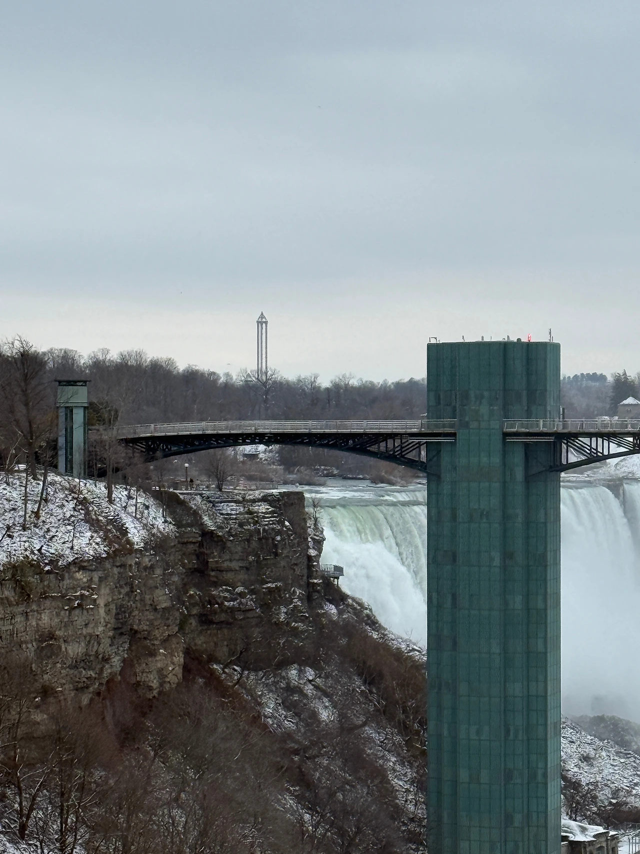 겨울철이라 전망대 끝자락은 안전 문제로 막혀 있었지만 브라이덜 베일 폭포와 아메리칸 폭포를 동시에 가까이에서 내려다볼 수 있었고 호스슈 쪽 파노라마와는 또 다른 여운을 느낄 수 있었다. 물줄기가 떨어지는 지점과 겨울 공기 속 피어오르는 수증기가 압권이었으며 단연 미국 나이아가라 폭포에서 가장 인상적인 장면이었다.