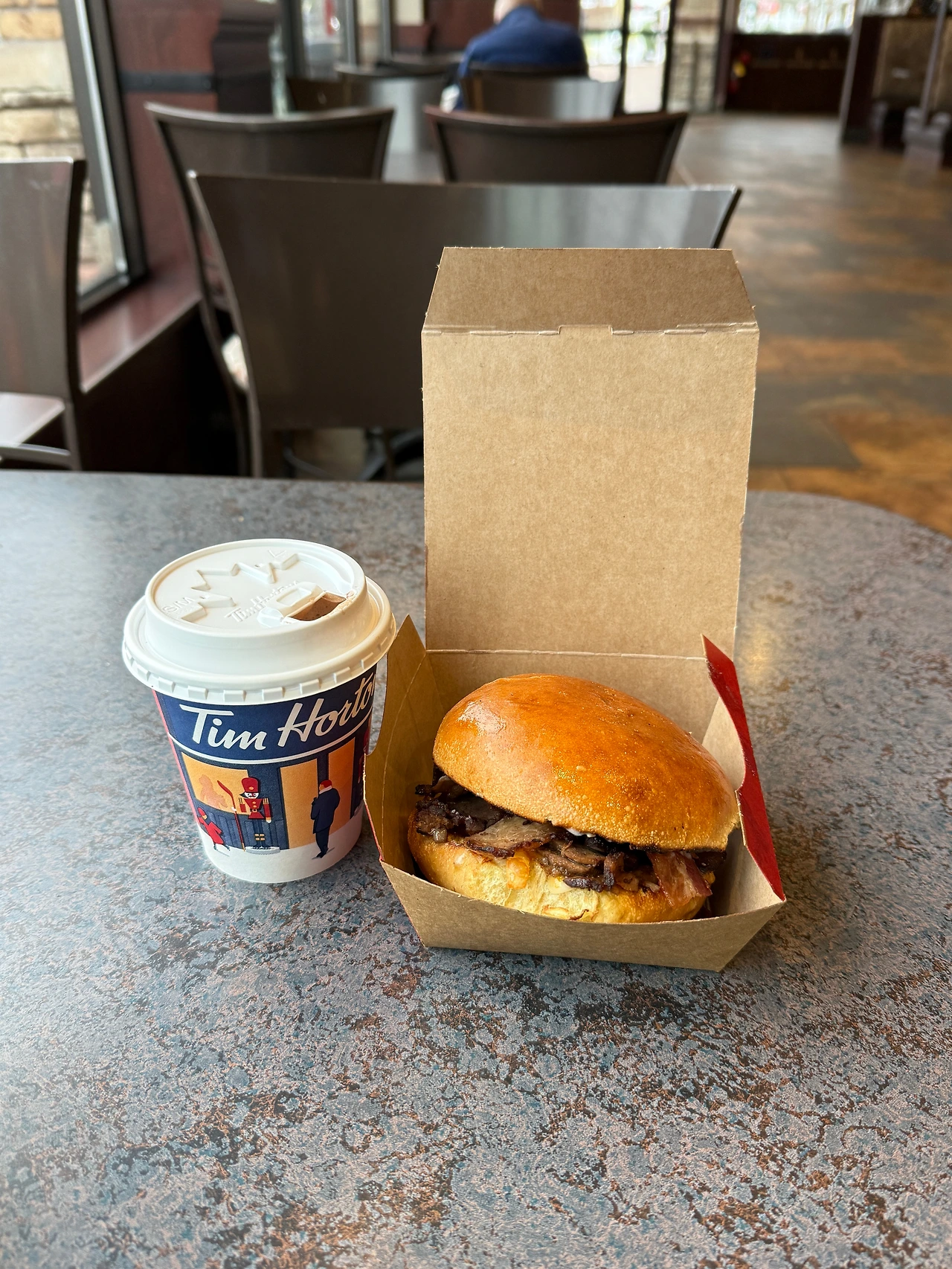 끼니를 해결할 만한 곳들은 대부분 햄버거 프랜차이즈로 사악한 관광지 물가를 피하기 적합하다. 캐나다에 오고 애정 중인 팀홀튼으로 들어갔고 Supreme Stack이라는 샌드위치로 꽤 가성비 좋게 점심 식사를 마쳤다. 뭐 이것도 엄밀히 말하면 햄버거에 가까웠다.