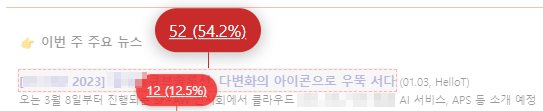 오프라인 전시회 사내 홍보 예시⒧ 전시회 참가 관련 기사를 공유하자 54.2%의 클릭률 기록나는 주 1회 사내 임직원께 업계 주요 기사를 클리핑 해서 공유하고 있다. (B2B 마케터의 소프트랜딩을 위한 뉴스 클리핑 참고) 전시회 전에 언론홍보 등을 진행하게 된다면 위 사진과 같이 관련 기사를 사내에 공유하는 것이 가장 쉬운 사내 홍보 방법.