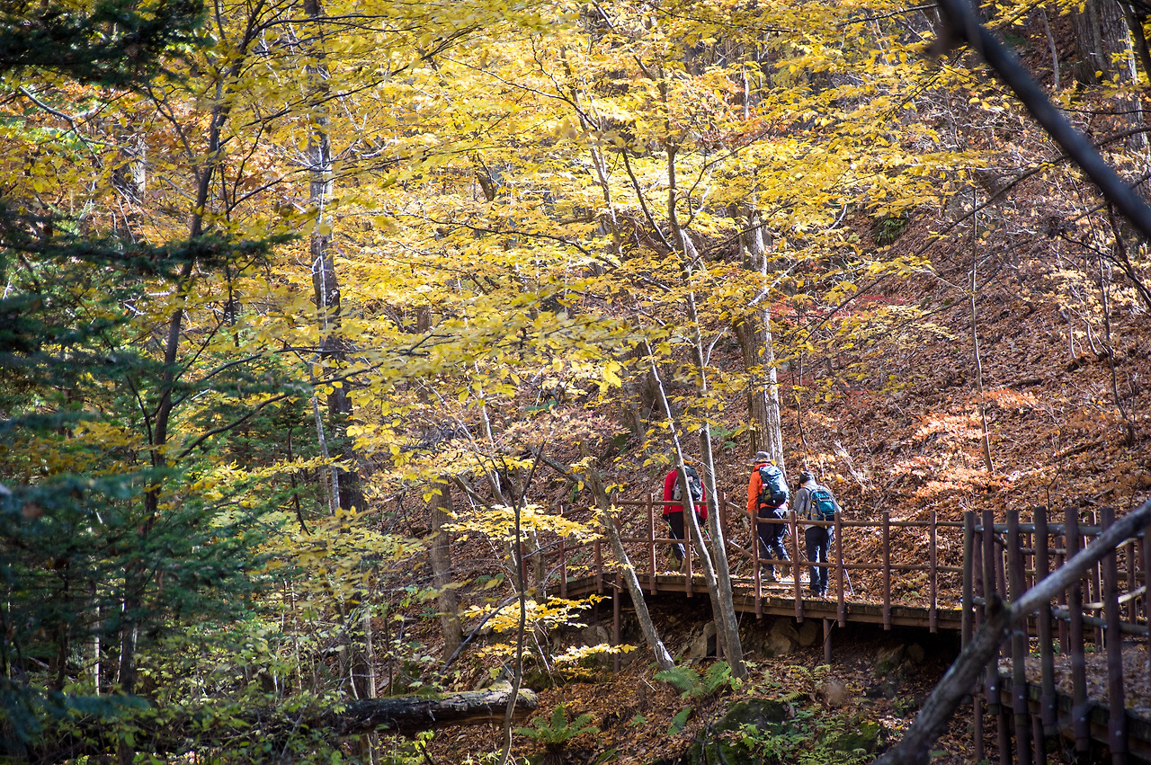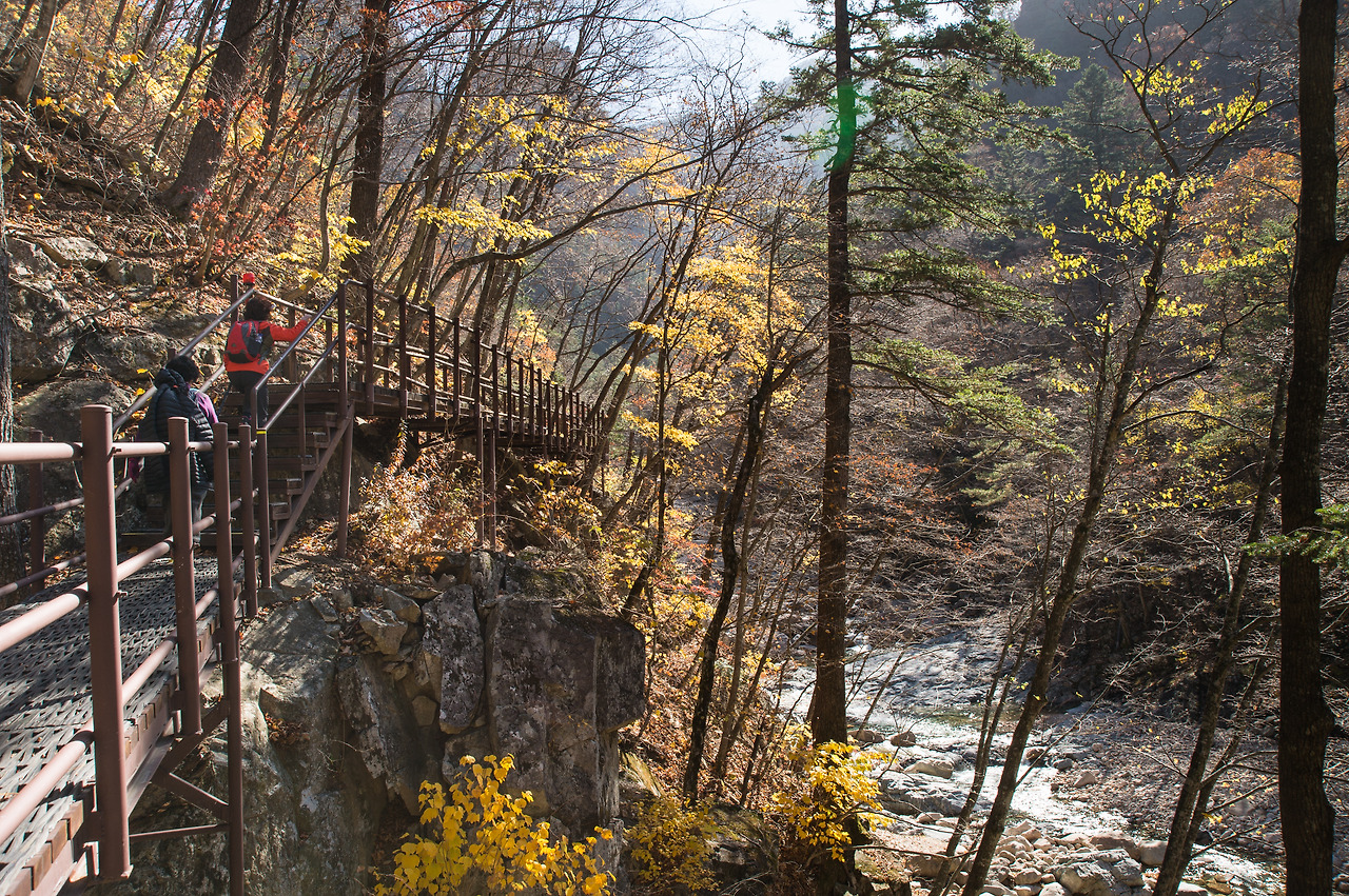 마음만으로는 한달음에 대청봉까지 뛰어오를 듯했지만 30년 만에 처음 오르는 설악이 그리 호락호락하면 안 되는 것이다. 수렴동 대피소에서 늦은 점심을 먹고 봉정암까지 올라가 보려 했지만 늦은 걸음 탓에 해지기 전에 내려오기 힘들 것 같아 2/3 정도 되는 지점에서 다시 수렴동 대피소로 돌아왔다. 길지 않은 두어 시간의 산행에서도 설악의 가을은 충분히 감동적이다.