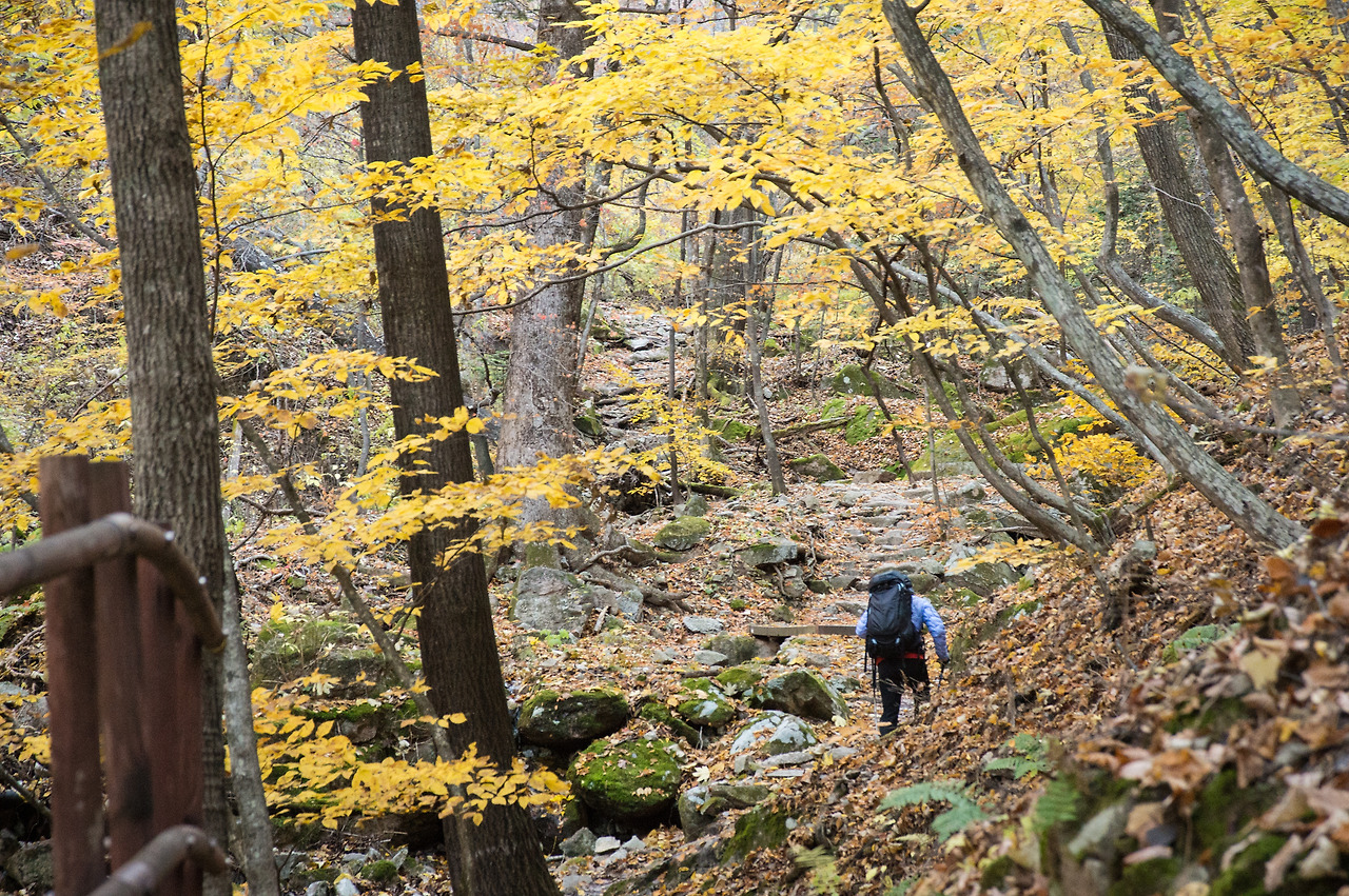스쳐간 분들은 오세암이라는 목표를 달성하지 못한 내가 안타까워 보였겠지만 내 목표는 단지 설악이었다. 내 친구가 그리도 예찬해 마지않는 설악이라는 곳이 어떤 곳일지, 그곳의 가을은 어떤 색일지, 대피소라는 곳을 왜 예약을 해야 하는지 등등... 터진 등산화를 신고 온 어처구니없는 친구를 위해 많은 것을 준비해 준 친구 덕분에 조금을 설악을 알기 시작했다. 아주 조금이지만 설악의 가을도 담았다. 좀 더 깊은 설악은 어떤 곳일까 궁금해진다.