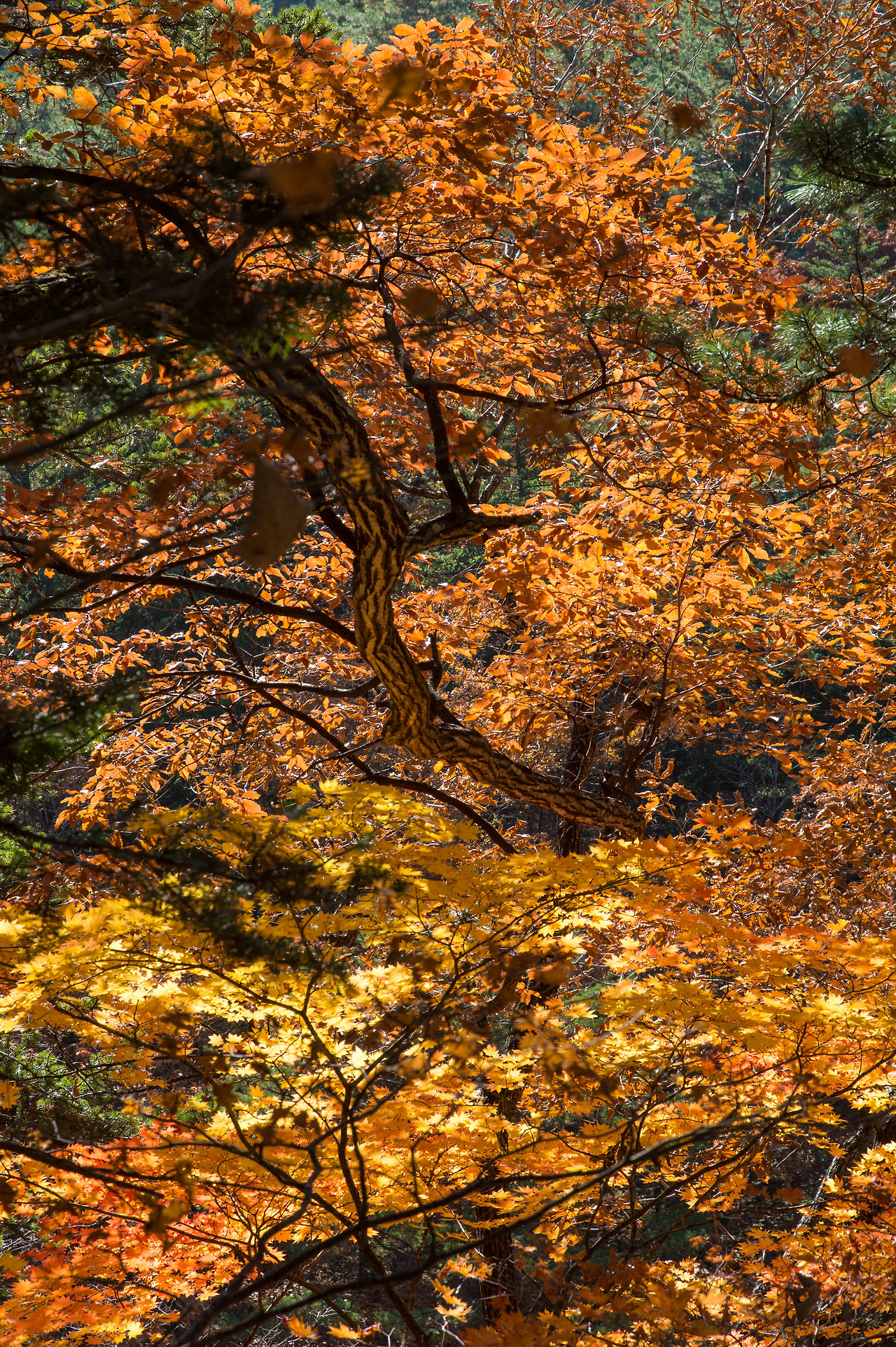 하산길에 느긋하게 계곡을 감상하며 셔터를 누른다. 급하게 올라갈 땐 볼 수 없었던 모습들이 세세하게 다가온다. 마침 적당히 떠오른 해가 경사면을 비집고 들어오면서 가을을 밝힌다. 오세암이 아쉽긴 했지만 어쩌면 나에게는 이 편이 더 나았을 것 같기도 하다. 이런 계곡에서 이런 햇살을 만나 사진으로 담을 수 있다는 것은 행운이다.