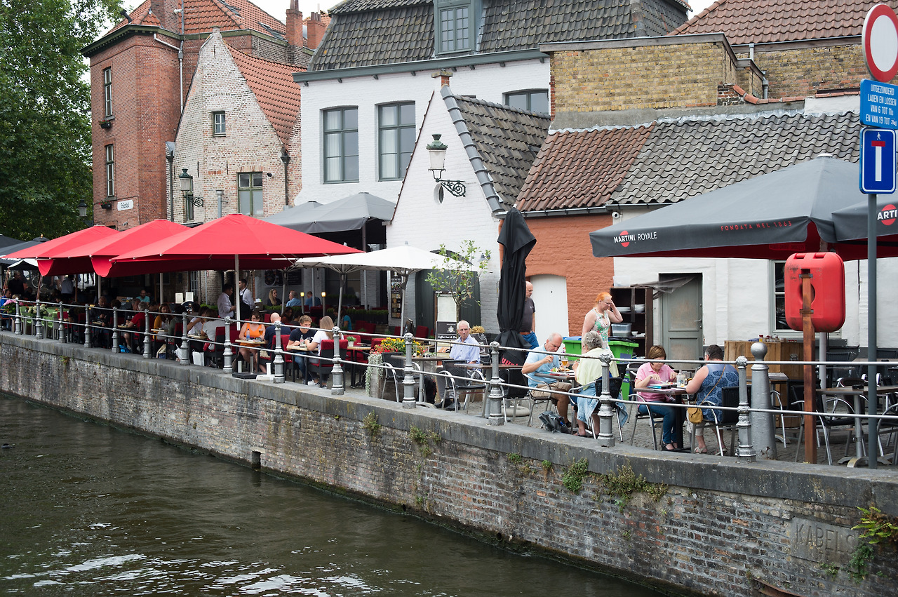 골목길을 기웃거리며 걷다 보니 가게의 표정이 달라져 있다. 관광객 대상의 매장이 아닌 현지인들을 위한 매장들이다. 영어는 거의 사라지고 불어와 네덜란드어만 주로 보인다. 조금 더 걷다 보니 조용한 주택가가 나온다. 야트막한 2층에 반지하 주택들이 줄지어 이어진다. 벽돌의 만듦새를 보면 그리 오래되지는 않아 보이는 건물도 있고, 바로 옆의 건물은 여러 가지 색의 벽돌이 부분적으로 벽을 이루고 있다. 도대체 얼마나 오래된 집들인지 가늠하기가 쉽지 않다. 이어진 도로 저 끝에는 중세시대에 성문으로 썼을 법한 높은 건물이 보인다. 열려 있는 성문으로 차들이 들어오고 있다. 예전에는 성문 옆으로 성벽이 이어졌을 테지만 지금은 성문만 남았다. 성문 밖에는 해자로 사용되었을 듯한 개울이 흐른다.