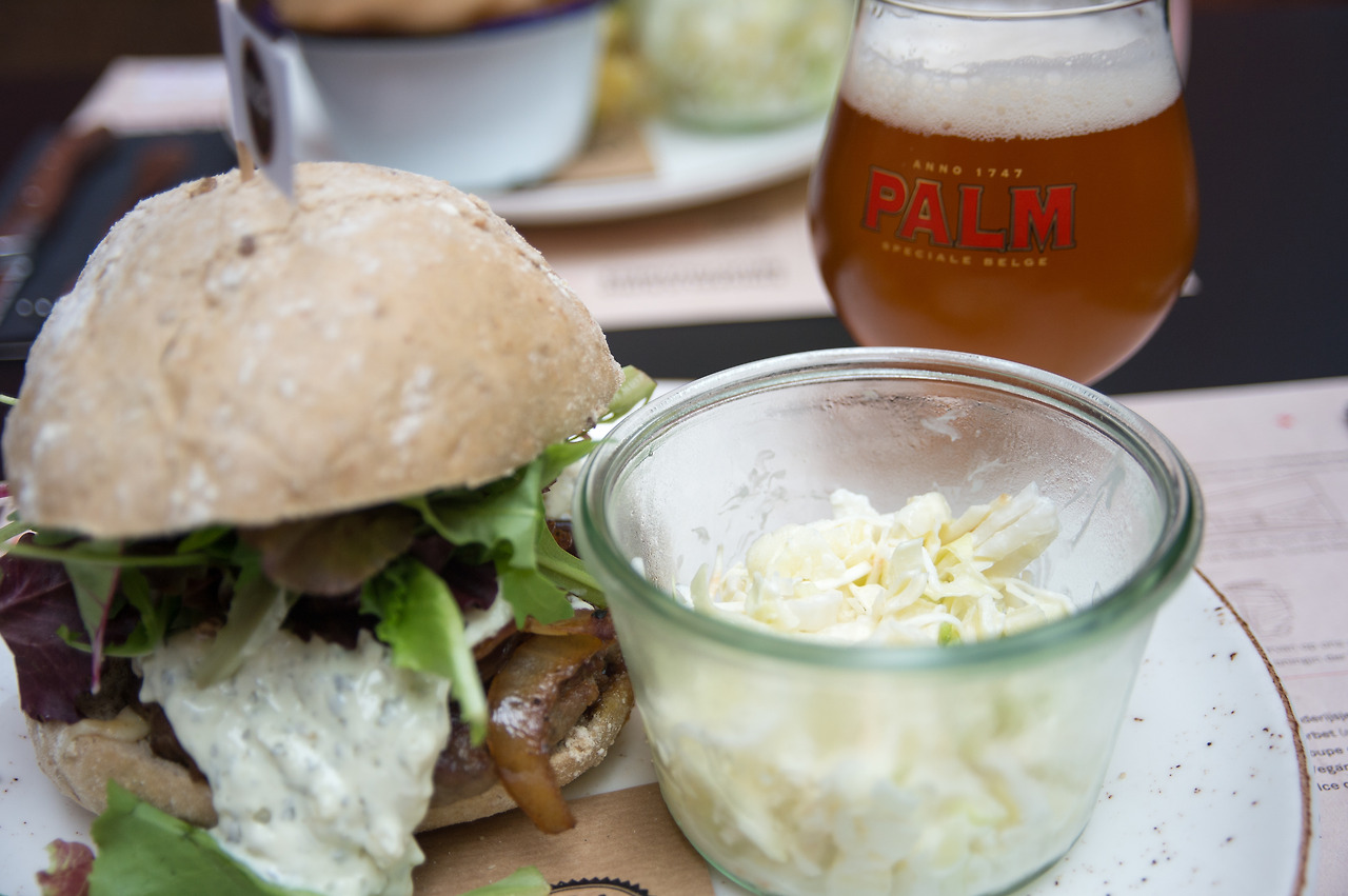 마침 가까운 곳에 나름 평이 괜찮은 햄버거 집을 찾았다. 건물 가운데 마당이 있는 프랑스풍 건물이지만 인테리어는 현대적이다. 가로수길에 새로 생긴 고급 수제버거 집이라 해도 될 정도. 맥주의 나라인 벨기에 답게 맥주와 햄버거가 페어링 된 세트가 메인이다. 가게 이름부터 Beer and Burgers. 홉이 풍부한 쌉쌀한 벨기에 맥주와 불맛이 도는 두툼한 패티의 수제 햄버거는 잘 어울리는 조합이다. 더구나 호밀과 귀리로 만든 구수한 빵 사이에 지역에서 재배한 야채가 듬뿍 들어있는 햄버거라면 더더욱 잘 어울린다.