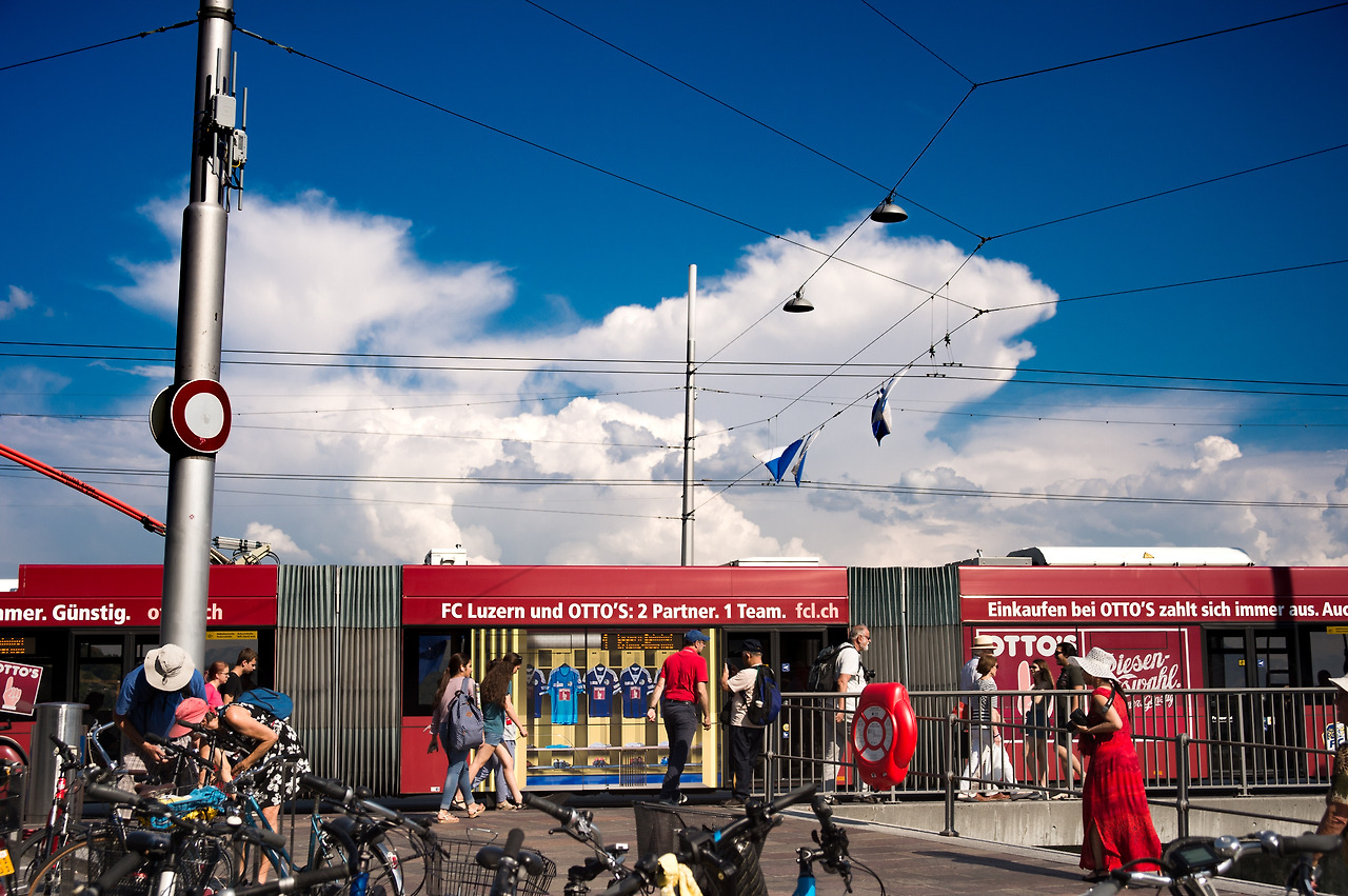 비트라 캠퍼스에서 혜진이와 헤어지고 혜나와 둘이 바젤을 거쳐 루체른에 도착했다. 중앙역 주차장에 차를 대고 역으로 나왔다. 역 광장에는 70년대에 불타 없어진 옛 역의 입구 아치가 기념비처럼 우뚝 솟아있다. 일제강점기 시대에 서울역이 루체른 역을 본떠 만들었다고 하던데, 이 아치가 구 서울역 입구 정도 되는 모양이다. 정면으로는 옛 시가지 건물들이 보이고, 좌측으로는 카펠교가, 우측으로는 백조가 떠 있는 루체른 호수가 펼쳐진다. 구시가지 쪽으로 다리를 건너가다 보니 루체른 호수 너머로 필라투스와 리기 봉우리들이 늘어서 있다. 파란 하늘과 봉우리 사이에는 흰 뭉게구름이 포슬포슬 뿜어져 나온다. 기억 속의 풍경이 현실과 겹쳐지면서 다시금 화려하게 색을 입는다. 을씨년스럽던 4월의 루체른 보다는 쨍한 8월의 루체른이 훨씬 화려하다.