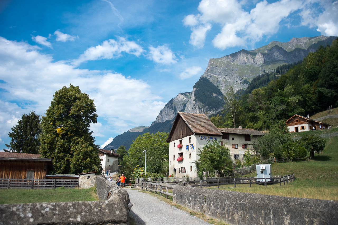 관광안내소 앞 게스트하우스를 겸하고 있는 식당에서 점심을 마치고 하이디 마을을 찾아갔다. 좁디좁은 시골 마을 골목길을 한참 동안 따라 들어가니 주차장이 나온다. 마을에선 보이지 않던 관광버스도 몇 대 서 있고 승용차도 생각보다 여러 대 주차되어 있다. 마을의 한적한 분위기와는 사뭇 다르다. 주차장 위로 호텔이 보인다. 전적으로 하이디 마을을 찾는 관광객을 위한 호텔일 텐데 제법 규모가 있어 보인다. 하이디의 인기가 새삼 실감 나는 장면이다. 주차장 옆으로 하이디 마을 표지판을 따라 길을 나서면 경사가 그리 심하지 않은 비탈길로 이어진다. 하이디가 염소를 끌고 다녔을 법한 길이다. 왼편으로는 알프스 변방의 높은 산자락을 끼고, 오른편으로는 마이엔펠트 마을을 내려다보면서 5분 정도 걸으니 하이디 마을이다.