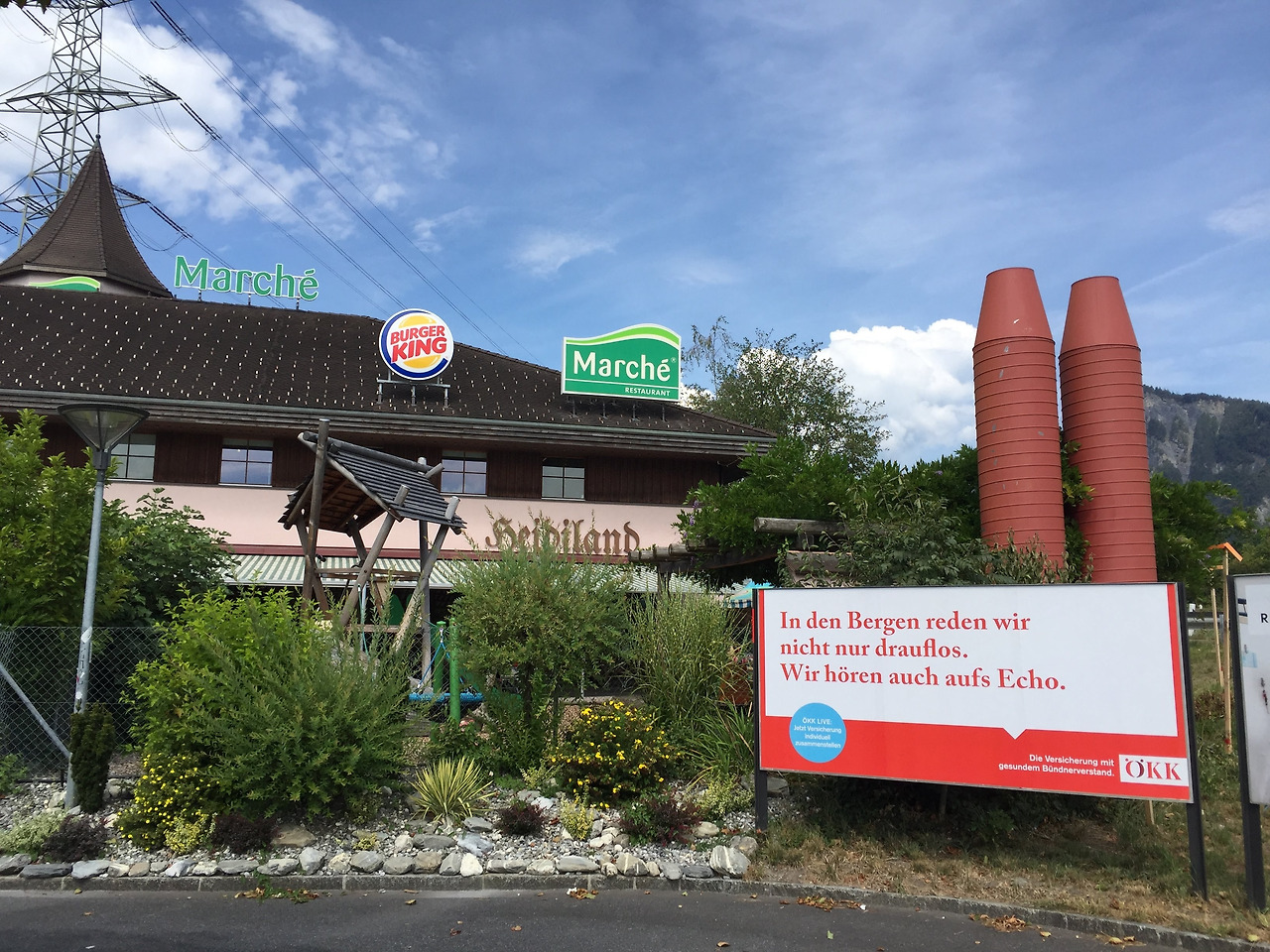 역시나 마이엔펠트는 아주 자그마한 도시였고, 지금이라도 저 모퉁이에서 하이디가 염소를 몰고 나타날 것 같은 골목길로 이어져 있다. 일단 마을을 한 바퀴 돌면서 하이디 마을 가는 길을 찾았지만 걸어가는 길만 표지가 이어질 뿐 자동차로 가는 길은 내비게이션을 이용해야 할 것 같다. 찬찬히 마을 구경도 할 겸 점심을 먹기 위해 마을 공터에 차를 세우고 식당을 찾아 나섰다. 구글 지도를 보니 마을 입구에 관광안내소와 식당이 있다. 충분히 걸어갈 만한 거리. 햇살은 조금 따갑긴 하지만 상콤한 바람이 따가움을 달래준다.