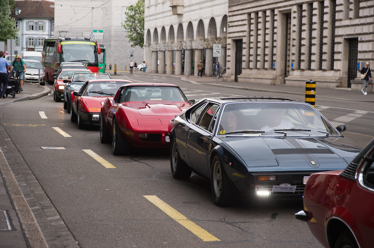 회색빛 대리석 건물 사이로 오래된 전차가 달리는 바젤 거리에서 70년대 자동차들은 아주 잘 어울린다. 특히 빨강 페라리와 콜벳은 바위틈으로 비집고 피어난 주목 나무의 열매처럼 빨갛게 빛나고 있고, 낮게 웅웅 거리는 배기음은 바위 사이의 벌집만큼이나 주변에 긴장감을 부여한다. 몇십 년 아니 몇백 년 동안 아무 일 없이 지나다녔을 조용한 거리가 일순간에 작은 요동을 겪는다. 쉽게 변하지 않는 옛 것과 쉽게 변하는 옛 것이 만들어내는 파장이 섞이면서 재미난 리듬을 만들어 낸다. 이번 여행에서 겪은 가는 날이 장날 4탄으로 충분한 즐거움이었다.