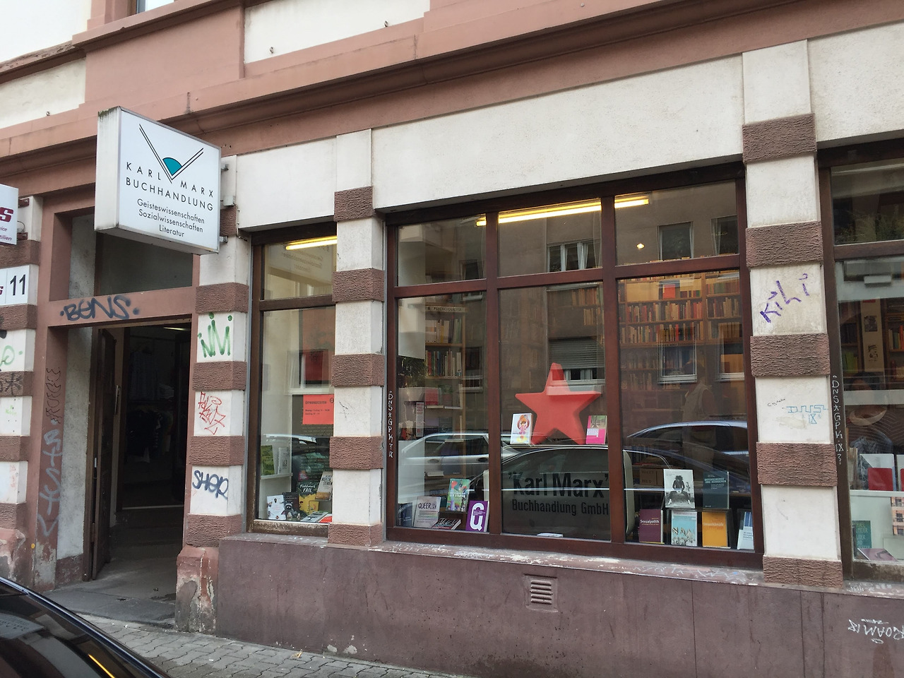 ‘칼 마르크스 서점(KARL MARX BUCHHANDLUNG)을 가게 된 연유를 설명하다 보니 이야기가 길어졌다. 여행 마지막 날, 인근의 쇼핑센터를 궁금해하던 아이들을 데리고 간 김에 같은 방향인 서점으로 향했다. 8월이라고 하기엔 믿을 수 없을 만큼 쌀쌀한 날씨인 데다, 이따금씩 비까지 뿌려대는 프랑크푸르트 주택가는 너무나 조용하다. 비에 젖어 차분히 가라앉은 거리, 이미 가을로 물들어 버린 갈색의 가로수 잎새들을 보면서 어젯밤의 야단법석을 떠올리기란 쉽지 않다.