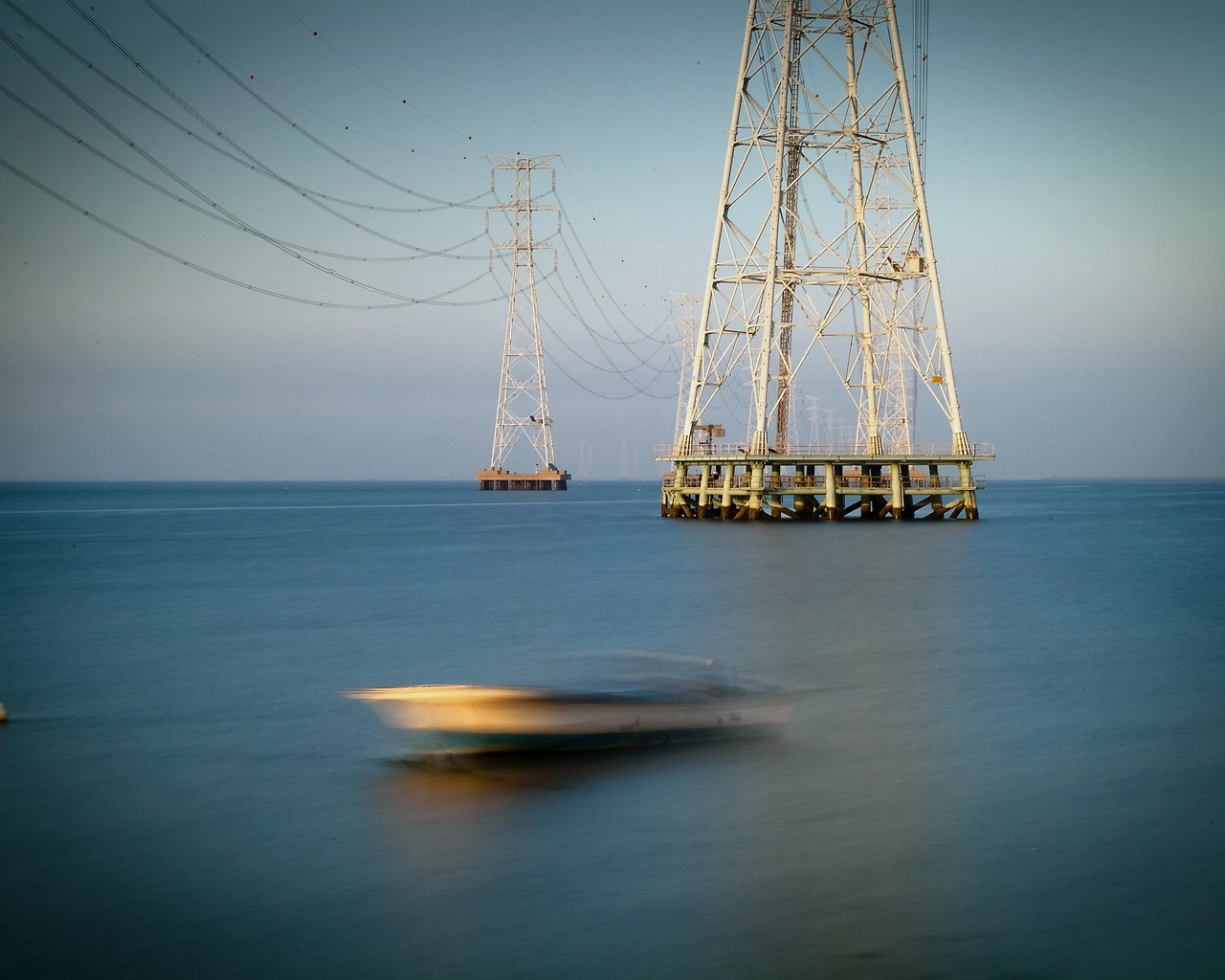 내가 처음 이 곳을 찾은 이유 역시 송전탑 때문이었다. 파란 호수 위, 파란 하늘 아래 줄지어 서 있는 거대한 송전탑들은 제법 매력적인 피사체였다. 장노출에 관심을 갖게 되면서 손쉽게 물결을 지울 수 있는 시화호의 잔잔한 수면도 자주 찾게 된 이유 중의 하나였다. 디지털카메라에서 평상시에 셔터를 열 수 있는 한계는 30초 정도. 그 이상이 되면 화상을 담는 소자에 열이 발생해서 화질에 문제가 생기기 쉽다. 서해 바다의 경우 1분에서 3분 정도, 파도가 심한 동해의 경우는 10분 이상 셔터를 열어 놓고 노출을 줘야 물결이 사라진 사진을 얻는다던데, 디지털카메라로는 불가능한 상황이다.