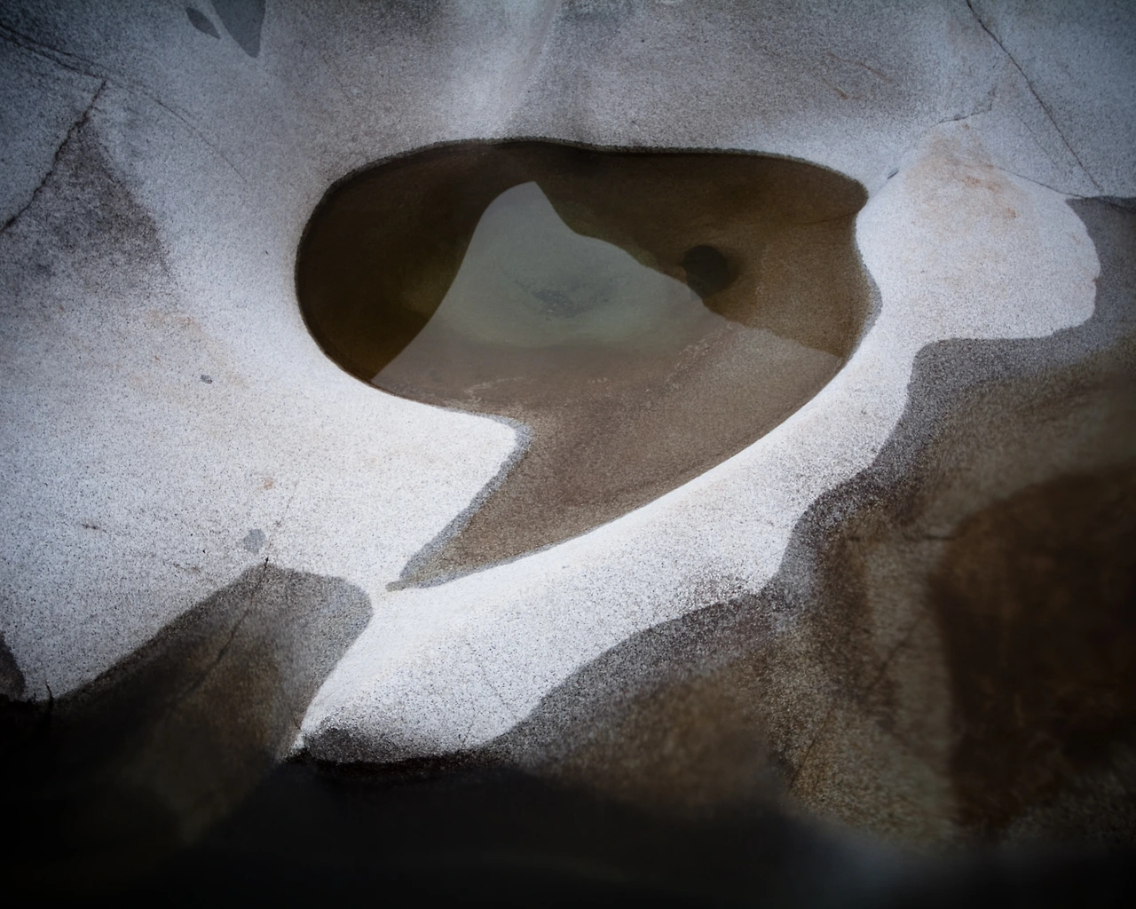 강바닥에 자리 잡은 커다란 바위 위에 물에 쓸려 자그마한 돌멩이 하나가 자리 잡는다. 바위 위로 타넘는 물은 돌멩이를 흔들어 대지만 돌멩이는 살짝살짝 진동만 할 뿐 휩쓸려 가지는 않는다. 그러면서 커다란 바위 위에 자그마한 흠집을 낸다. 이윽고 큰 비가 오면 돌멩이는 하류로 휩쓸려 나가고, 한참의 세월이 지나 또 다른 돌덩어리가 그 자리에 밀려 올려진다. 돌멩이가 자리 잡고 비틀거리면서 틈바구니는 조금씩 커지고, 오랜 시간 돌멩이를 흔드는 물길로 그 자리는 접시처럼 갈려 나간다. 자그마한 접시는 어느덧 웅덩이로 커졌다. 그 웅덩이에 흙과 광물을 잔뜩 머금은 강물이 고이고, 다시 말라 쇳물의 깨진 동그라미를 그린다. 쨍한 햇볕에 미처 마르지 못한 물은 그 동그라미의 색을 더욱 진하게 채색한다.