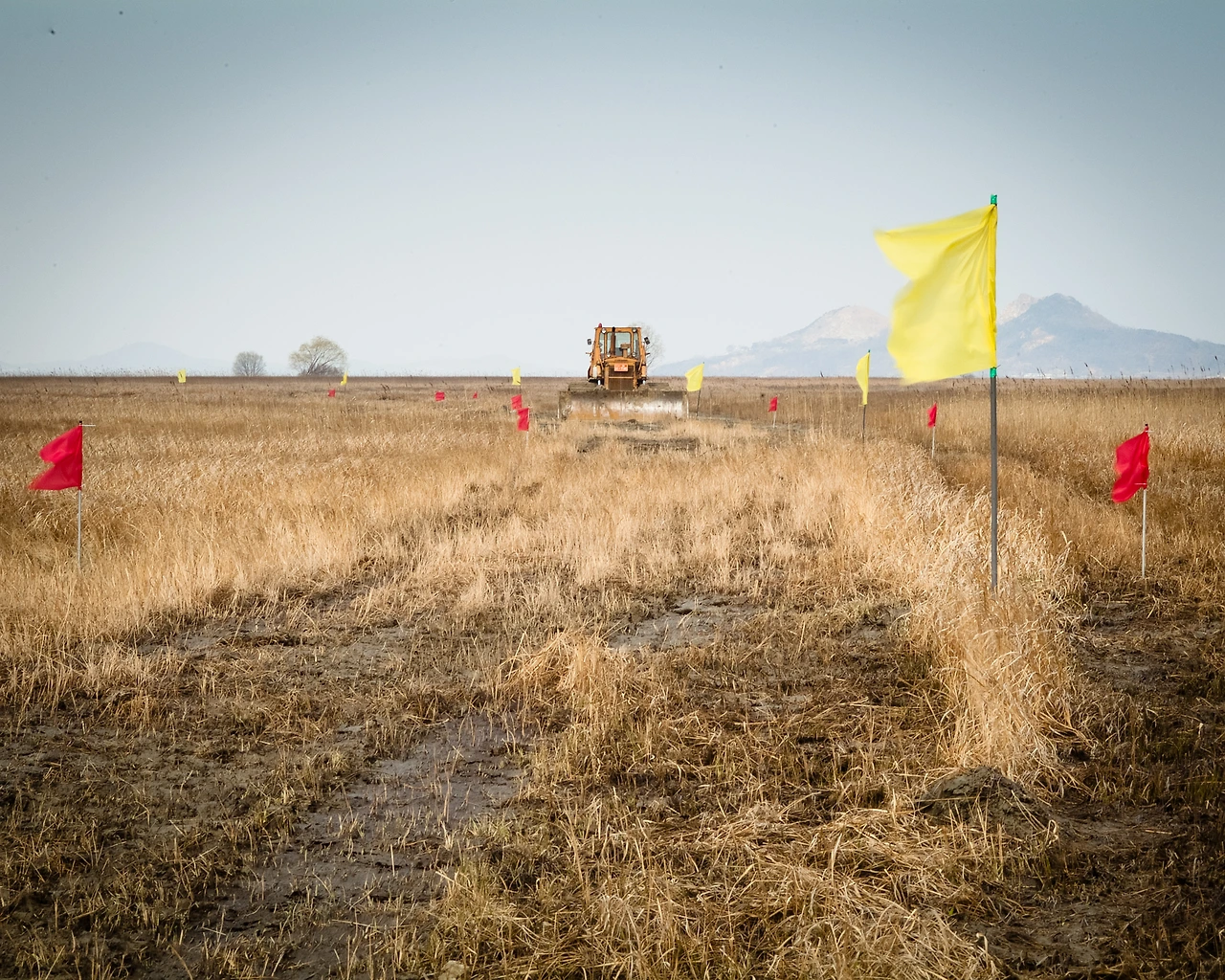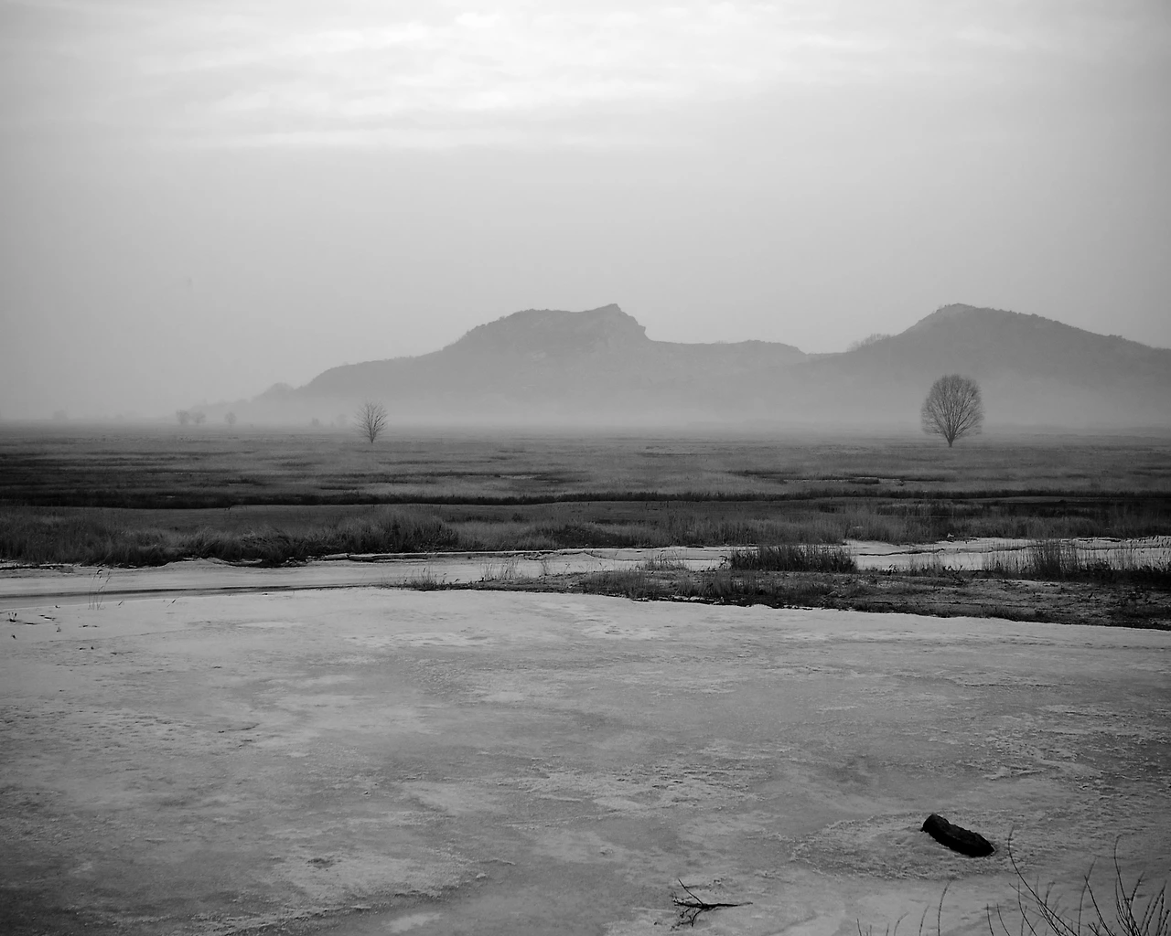 허허벌판에 서서 바람소리를 듣는다. 저 멀리 아스라이 희미한 산자락이 보이고, 내 앞에는 저 만치에 나무 한 그루뿐. 단단히 굳어 버린 뻘 밭과 발목을 스치는 얕은 풀 자락들, 누군가 버리고 간 TV와 스프링이 드러난 낡은 소파... 버려진 마을은 인적도 끊어지고, 눈 길 닿는 사방에 사람이라고는 나 혼자다.