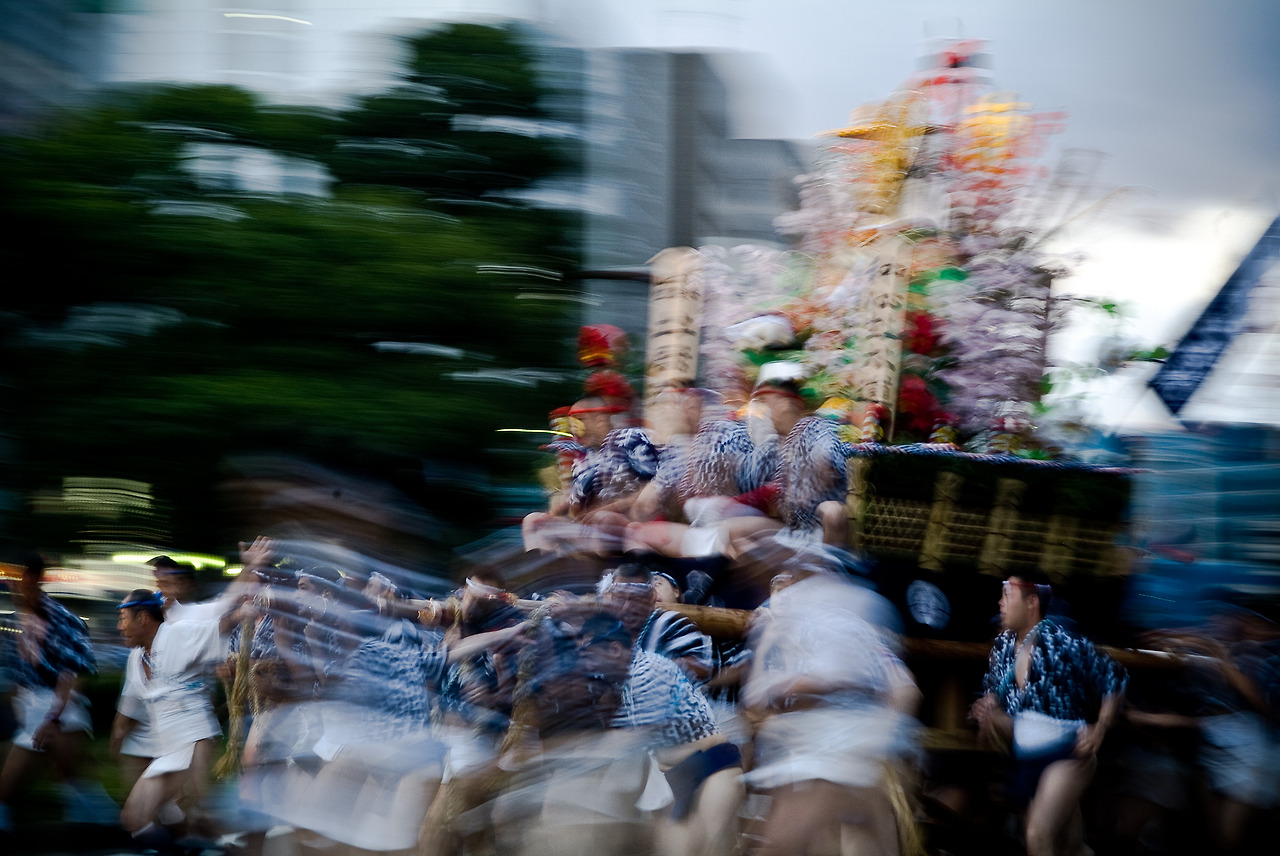 가마의 행렬은 있는 힘껏 달려 거리를 지나쳐간다. 가마를 메는 사람도 달리고 주변에서 그냥 달리는 사람도 있다. 어떤 팀은 일사불란하게 가마를 교대해 가며 달리기도 하고, 어떤 팀은 있는 힘껏 소리를 질러가며 달리기도 한다. 모두 열심히다. 달리는 사람도, 구경하는 사람도... 덩달아 사진 찍는 나도 열심...