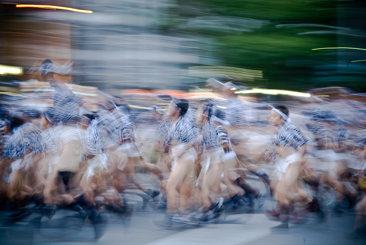 멀리 동터오는 하늘을 배경으로 아직 어둠이 가시지 않은 거리를 달리는 이들의 모습에서 평소 검은 양복에 어깨를 늘어뜨리고 다니는 일본 중년의 모습을 찾아보기란 쉽지 않다. 애써 오버래핑을 시켜 보지만 희끗희끗한 백발만 겹쳐 보일 뿐이다. 거리에 나와 있는 사람들이 관광객만은 아닌 듯하다. 누군가를 가리키며 웃는 모습이나 훈도시를 입은 남자와 눈이 마주칠 때마다 반갑게 손을 흔드는 모습을 보면 가족이거나, 회사 동료이거나, 동네 사람이거나... 생면 부지의 사람은 아닌 듯하다.