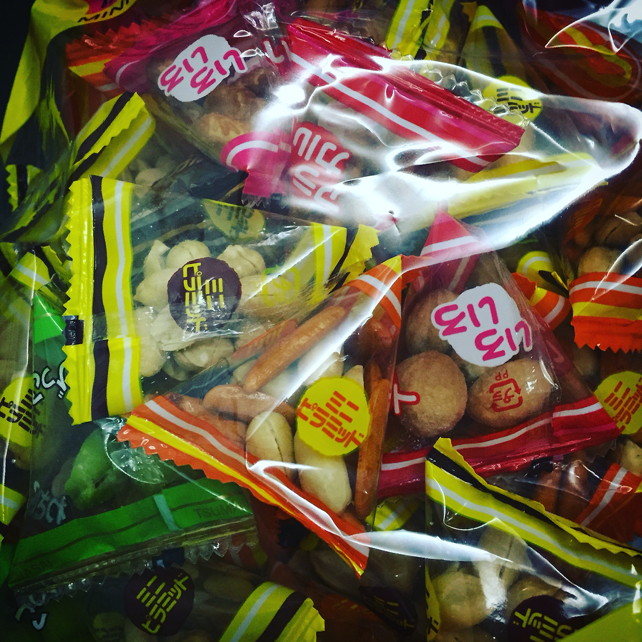 이런 저런 땅콩과 밀가루 과자들이 와사비 과자처럼 피라미드 형태로 개별포장되어 있다. 와사비에 부담감을 느낀다면 이 과자도 좋다. 가격도 600엔쯤.