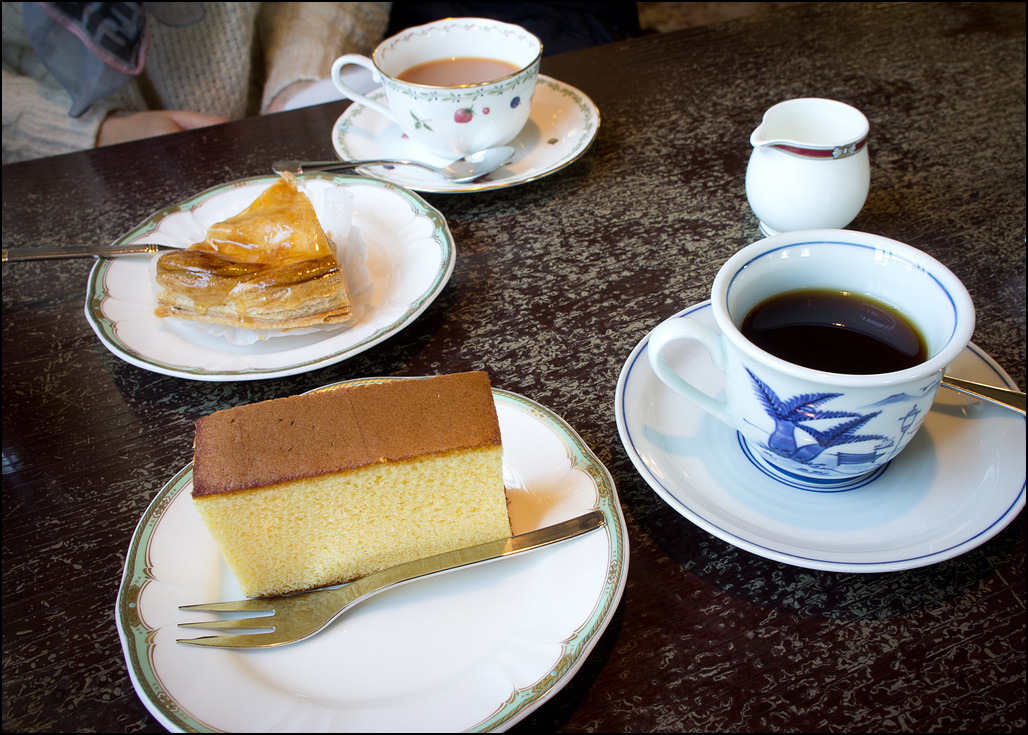 오후 내 걷고 지친 다리를 쉬기 위해 구라바엔 안의 찻집을 찾았다. 카스텔라와 조각 케이크 세트를 시켰다. 나가사키에서 카스텔라를 안 먹고 지나칠 수는 없는 노릇이니. 카스텔라도 맛있었지만 구라바엔의 풍경을 그려 넣은 도자기 컵이 더욱 눈길을 끈다. 언덕 위의 저택에서 바람을 잔뜩 안은 범선이 지나가는 모습을 보았을 19세기의 사람들을 상상해 본다. 물론 이 컵은 출구 바로 전에 있는 기념품 가게에서도 판매한다. 참, 커피맛 역시 아주 좋았다.