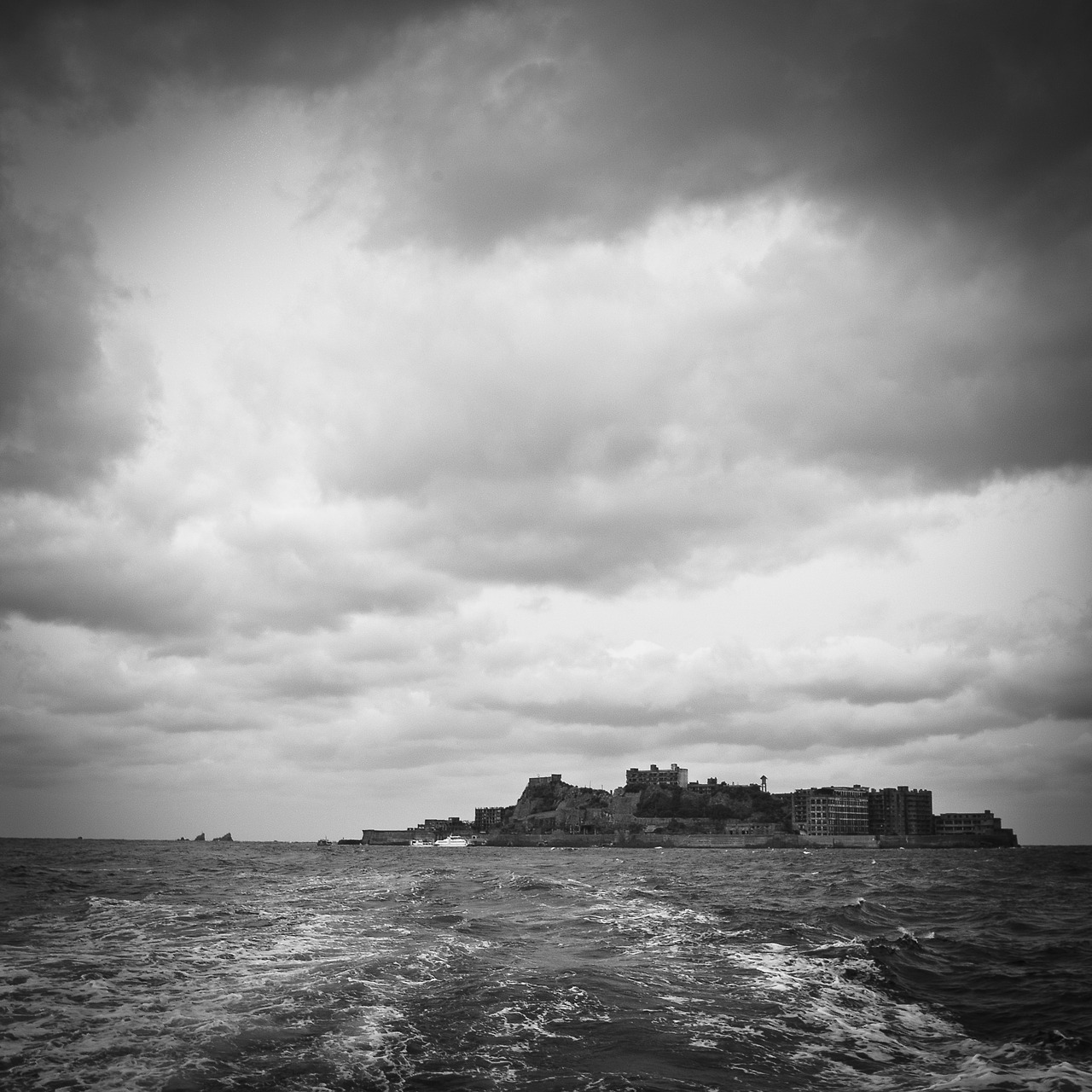 섬에 가까워지면서 왜 이 섬이 군함도로 불리게 되었는지는 분명해진다. 섬 전체가 콘크리트 옹벽으로 둘러싸여 마치 바다에 떠 있는 거대한 군함처럼 보인다. 구름이 짙게 드리워진 우중충한 날씨 탓에 섬의 형체는 더욱 을씨년스럽다.