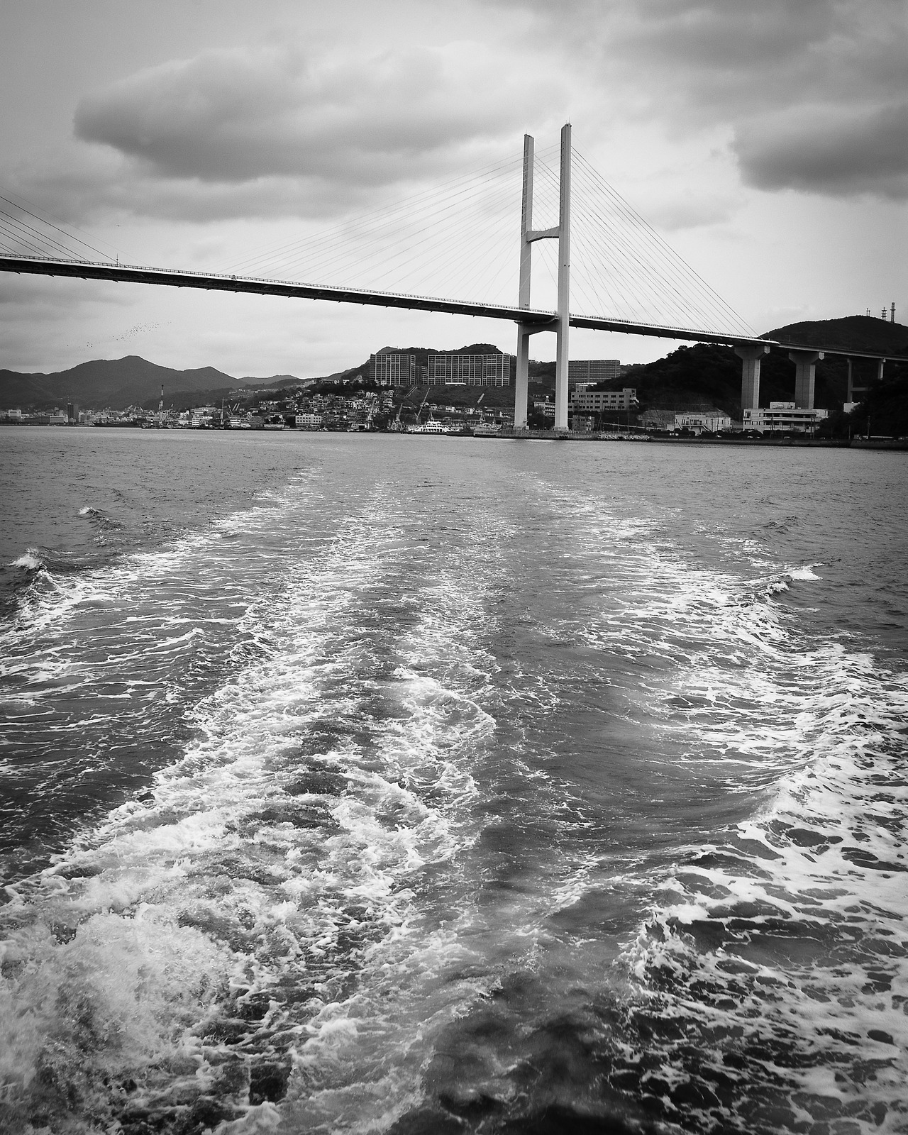 아침 일찍 항구로 나가 군함도로 가는 배편을 끊었다. 나가사키 만을 빠져나가는데 제법 시간이 걸린다. 바다를 가로지르는 대교를 지나 큰 바다로 나가니 파도가 높아진다. 승객은 20여 명, 20대 젊은이와 70대 노인분들로 나누어진다. 외국인은 나 밖에 없는 모양.