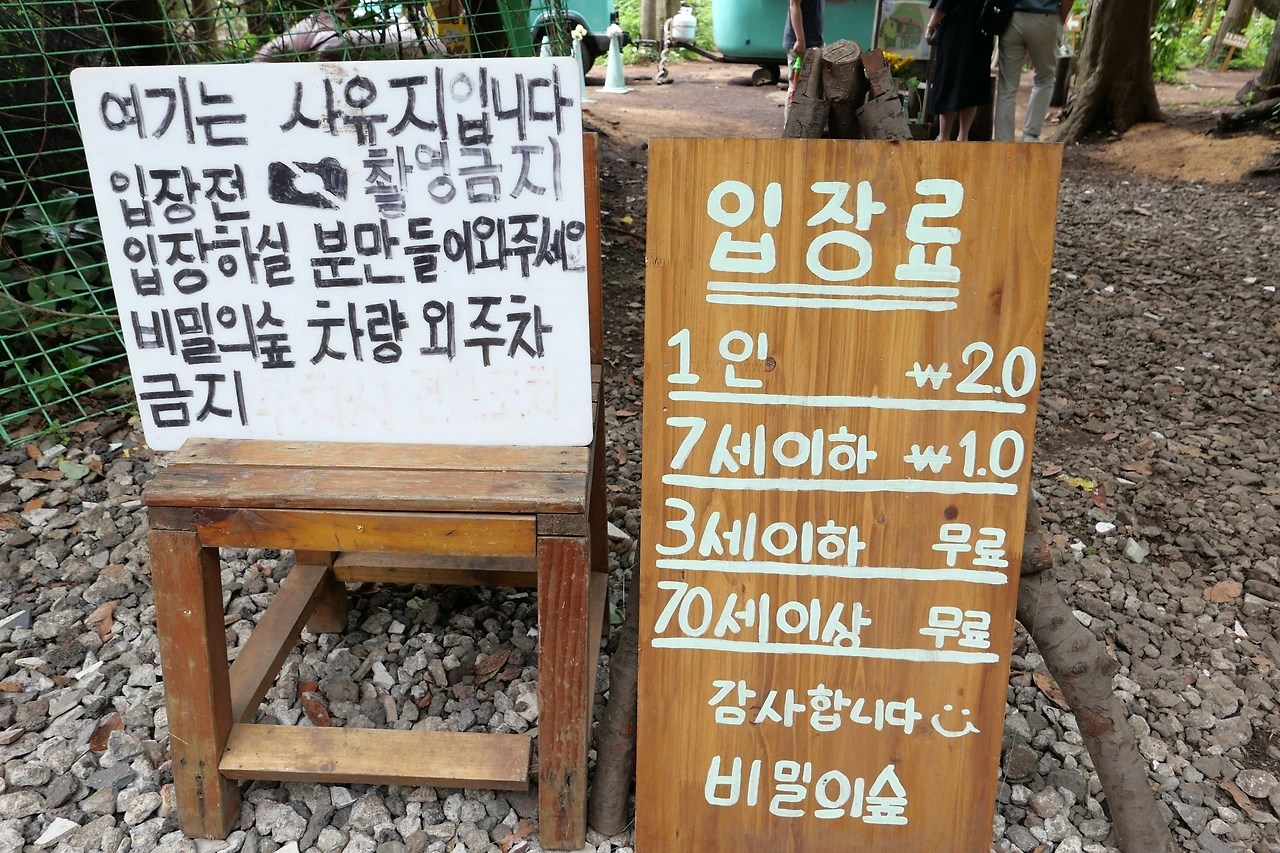 우도로 취재 간 친구가 성산항에 도착하는 시간과 내가 성산항에 도착하는 시간을 계산해보니 20분 정도 남는다. 미리 도착해 주차장에서 가만히 넋 놓는 건 싫고 그날 하필이면 동선상 비밀의 숲이 걸쳐 있었다. 붕 뜬 시간이라 적당히 취재할 수 있는 숲도 없고 ‘책에 사용할 이미지 컷 촬영이나 해볼까?’ 하는 마음에 비밀의 숲에 갔다. 앞으로도 특별한 이유가 없는 한 시간 내서 방문하지 않을 게 뻔했다. 그렇게 비밀의 숲으로 향하는 길, 2차선 도로일 만큼 폭이 넓은데 1차선 도로처럼 다니는 차들과 울퉁불퉁 비포장길에 몸을 맡기면서 ‘이렇게 하고 와야 하는 곳인가?’ 하는 의문을 품었다. 아스팔트로 잘 포장된 길도 있지만, 주소 검색으로 설정하지 않으면 비포장길로 안내한다. ‘다들 이런 길을 견디고 방문하는 거였어!’하고 숲 입구와 점점 가까워졌다. 아, 그런데 눈앞에 펼쳐진 풍경은 그 어떤 숲 입구보다 더 놀라웠다. 일렬로 늘어선 주차 행렬이… 흡사 맛집도 이보다 더하진 않으리라!