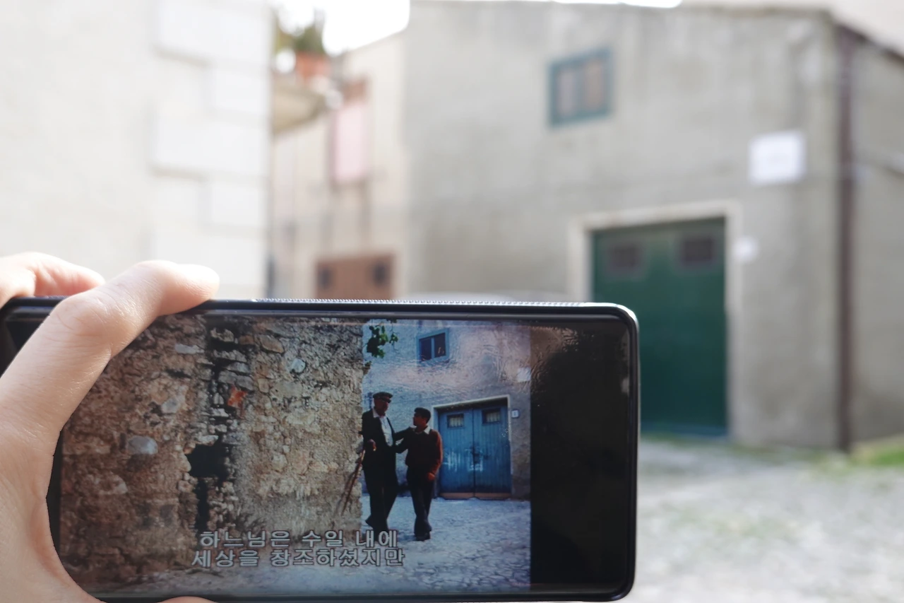 알베르토의 집 앞 계단과 거리, 토토가 어린 시절 살던 집, 청년 토토가 앉아 고뇌하던 바위와 성당 앞 계단, 알베르토와 토토가 나란히 앉아 대화 나누던 파란 문, 광장의 종탑과 분수대 등을 찾으며 남편은 행복해서 어찌할 줄 모르는 아이 같았다. 마치 소풍날 보물 찾기에서 큰 보물이라도 찾은 아이처럼 말이다. 바위 앞 집 할머니는 “어떻게 여길 찾았어?”라고 물었고, 파란 문 앞 집주인은 사진 찍는 우릴 보며 웃었다. 영화 속 모습과 달라 혹시 공사를 했냐고 물었더니 “그렇다.” 했다. 시간의 흐름 앞에 조금씩 변한 곳에서는 내심 아쉬워했지만, 장소 하나하나를 찾을 때마다 언제 휴대폰에 캡처해뒀는지 영화 속 장면을 보여주며 내게 설명을 했다.