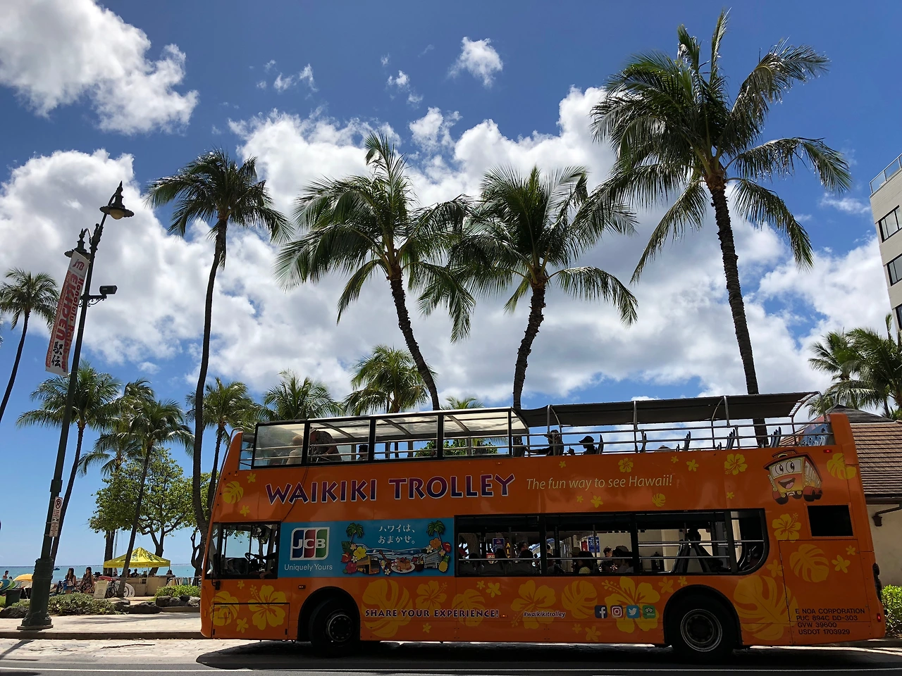 아니요. 트롤리는 오아후 와이키키 일대와 빅 아일랜드 코나에서만 이용 가능한 교통수단이다. 오아후 경우 유명 스폿을 연결하는 노선으로 운영되고 있어 와이키키 주변 관광지는 충분히 돌아볼 수 있다. 버스보다 트롤리가 낫다. 빅 아일랜드 코나의 트롤리는 정말 ‘코나 다운타운’ 지역만 운행한다. 쉐라톤 코나 리조트-킹 카메하메하 메리어트 호텔 사이가 운행 구간이다.