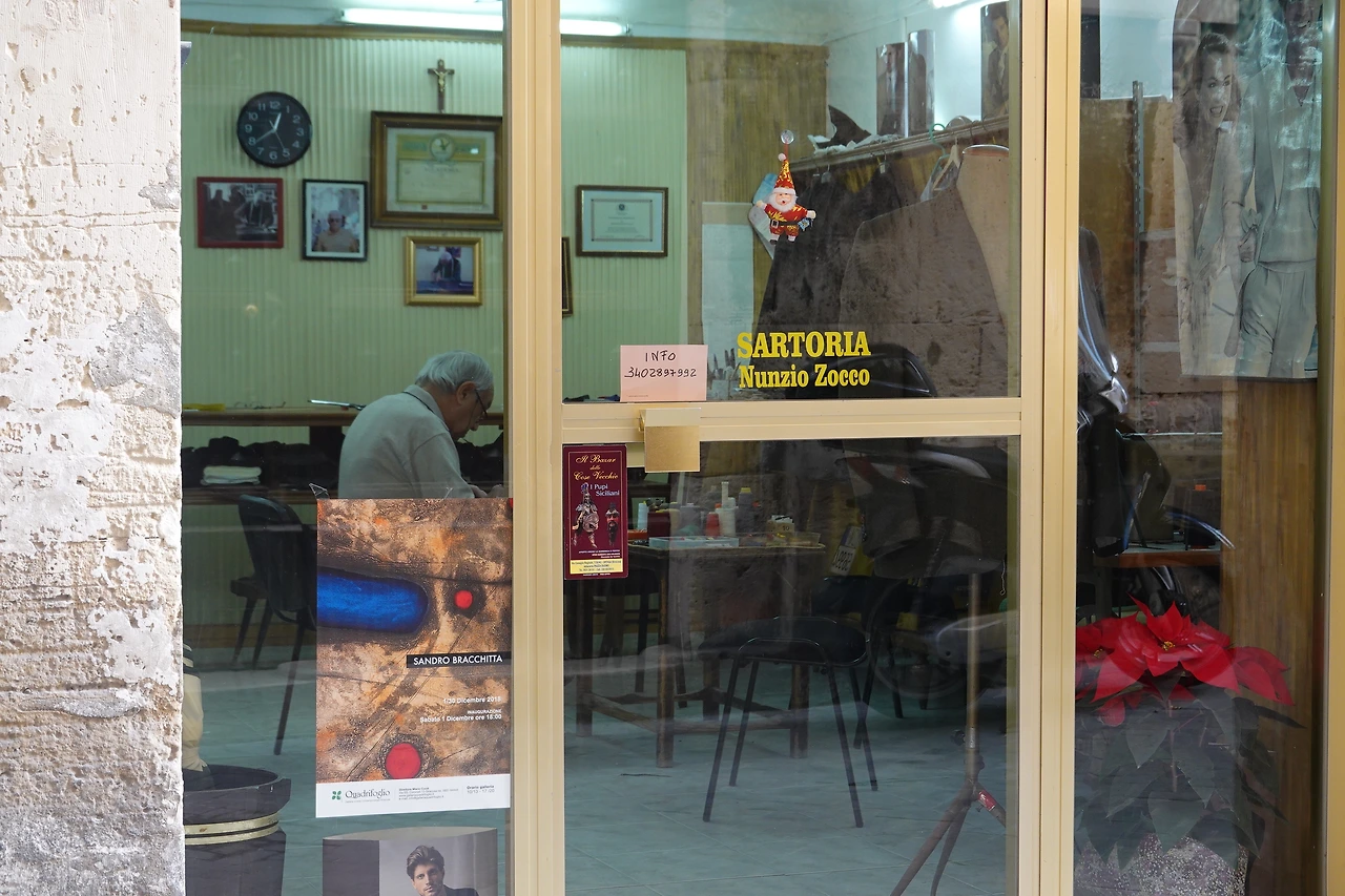 이튿날 양장점 앞길로 갔다. 빨간 조끼 노장은 어디로 갔는지 없고, 나머지 노장 홀로 바느질 중이다. 그 모습을 잠시 훔치다 일정에 나섰다. 시라쿠사 시장, 시라쿠사 고고학 공원, 마돈나 성당을 돌아본 후, 호텔로 오는 길, 이번에 보니 양장점에 손님이 있다. 두 노장은 보이질 않는다. ‘어디 가셨나?’하며 살펴보니 빨간 조끼 노장이 구석에 있는 오래된 재봉틀 앞에 앉아 페달을 밟고 있다. 유심히 보지 않으면 잘 보이지 않는 자리다. 내가 그를 찾느라 두리번거리는 동안 의자에 걸터앉은 손님이 힐끗 거리며 나를 바라본다. 첫사랑에 빠진 소녀처럼 잘 보이지도 않는 빨간 조끼 노장의 모습을 가까스로 담으며 마음의 기운을 충전한다. 그다음 날도 조식 후 후다닥 양장점 앞을 훔치러 다녀왔다.