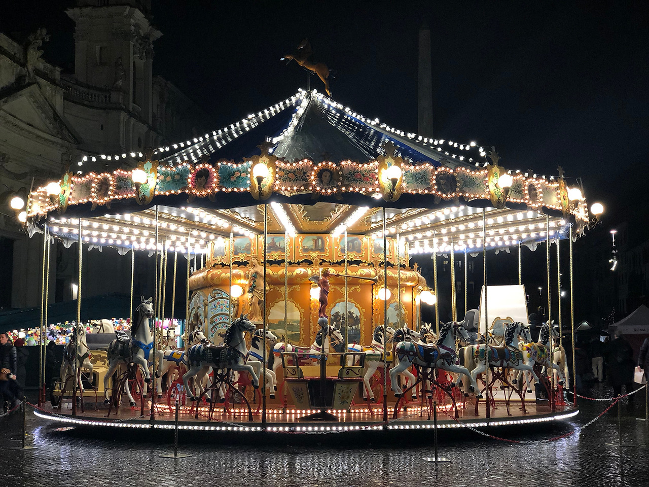 나보나 광장의 넵튠 분수, 오벨리스크, 회전목마, 폰타나 델 로모가 일렬로 광장에 찾아온 손님을 반겼다. 객실이 있는 3층에서 내려다보니 가지각색의 군중들이 제멋대로 광장을 즐기는 것이 한눈에 들어온다. 군밤을 사고, 분수를 돌고, 간이 공연을 보고, 크리스마스 마켓을 구경하고 인형 뽑기 등의 게임을 한다. 날씨는 유쾌하지 않았지만, 분위기만은 쾌청하다. 고대 로마 황제 경기장으로부터 시작해 중세기 동안 민중들의 축제와 행사의 장이 되고, 대중들이 즐겁게 삶을 즐겼던 이 공간은 수많은 시간이 흘렀음에도 지난날 그 생동감 넘치는 모습과 기운을 간직한 모양이다.