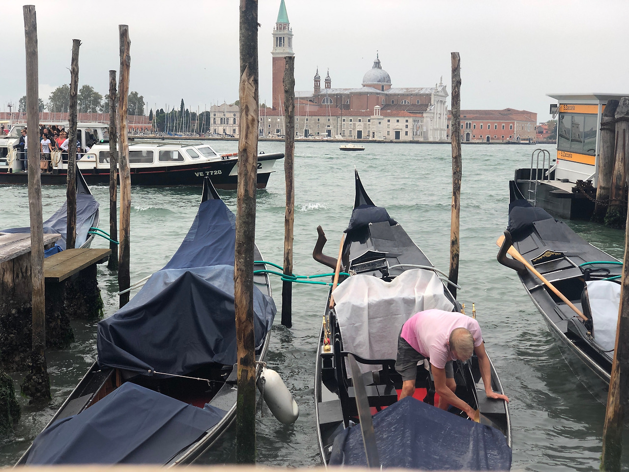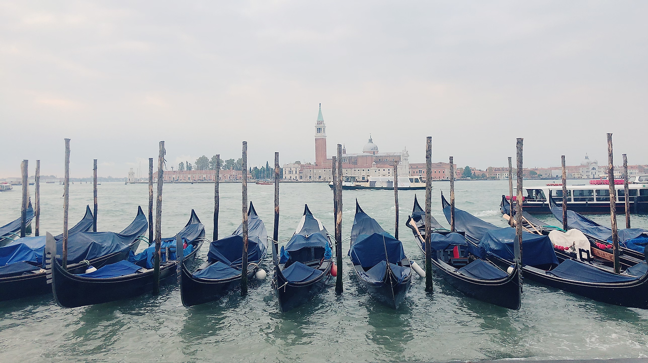 숙소로 돌아오는 길. 영업을 앞둔 곤돌리에는 곤돌라를 청소하느라 바쁘다. 하늘은 구름 한가득이지만, 이 구름이 커플의 달곰함을, 관광지의 활기참까지 감출 수 있으랴! 숙소 앞까지 오니 기다렸다는 듯 남편이 창문을 열며 손을 흔든다.