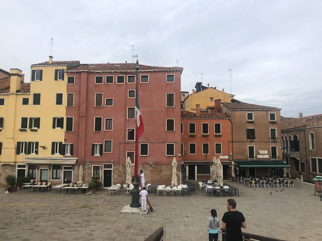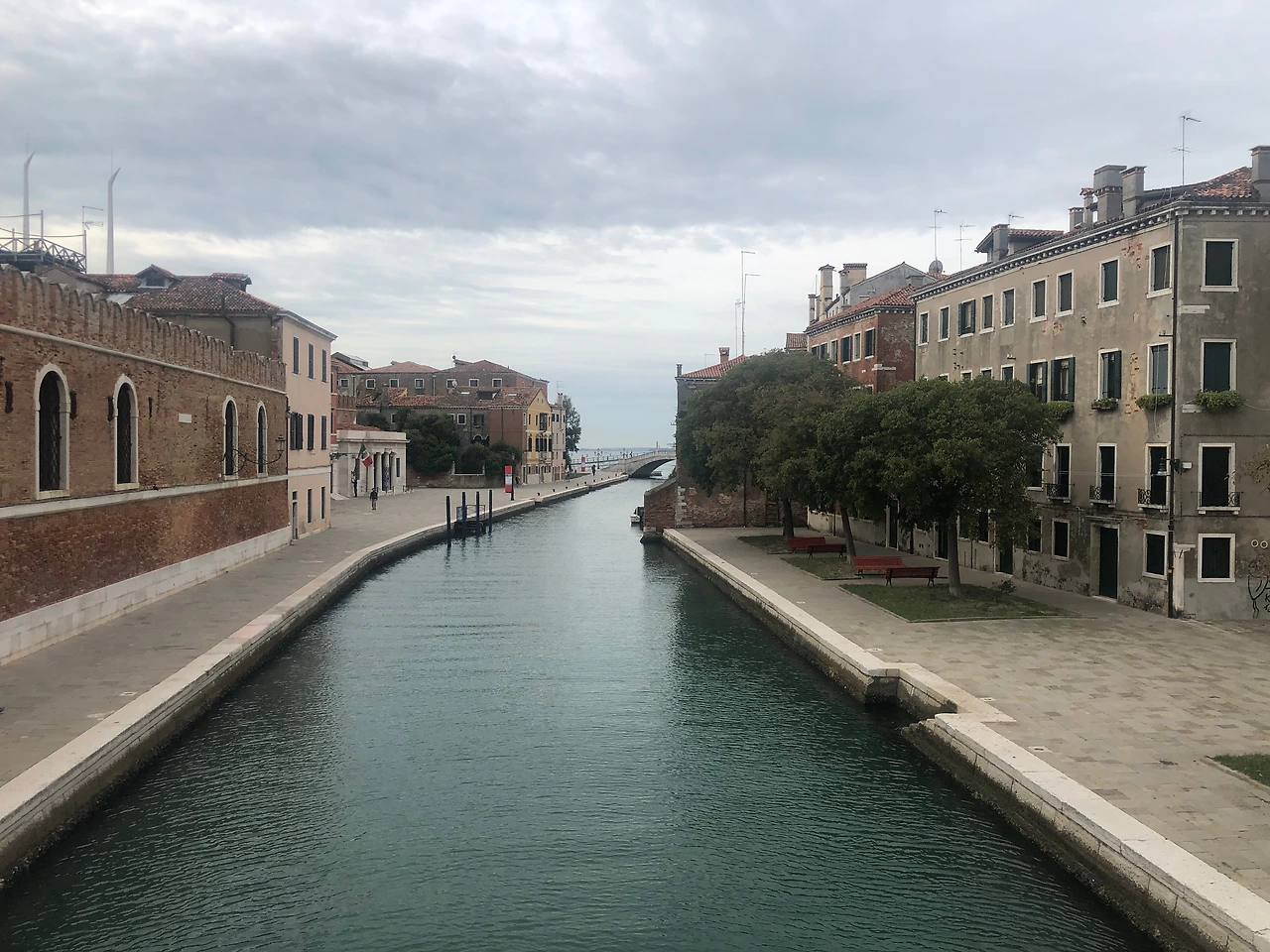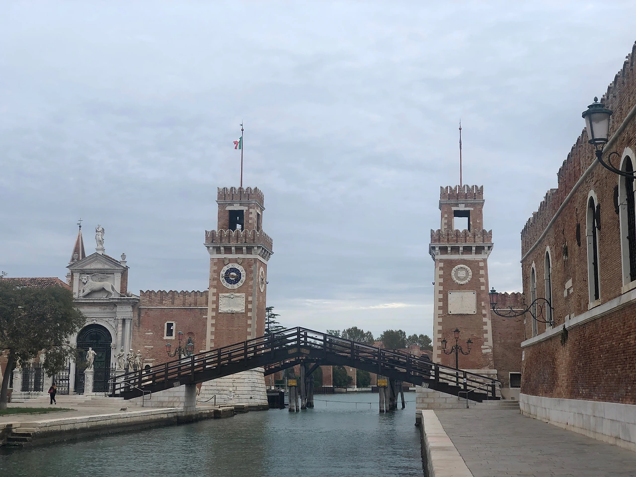 평소와 다른 길로 걸음을 틀었다. 작은 수로를 사이에 둔 Fondamenta Arsenale 길로 산책을 나선다. 비아 주세리 가리발디(Via Giuseppe Garibaldi)보다 한적하다. 길 끝에 그 모습도 늠름한 아르세날레 입구가 있다. 로마 멸망 후 수백 년 간 지중해 해상과 경제를 제패한 이곳 베네치아의 위용을 말해주는 듯하다. 당시엔 세계 제일의 조선소였지만 현재는 해군 기지다. 새하얀 제복을 입은 두 명의 군인이 나와 이탈리아 국기를 게양 중이다. 그리고 무언가 알리는 듯한 음악이 흘러나온다.