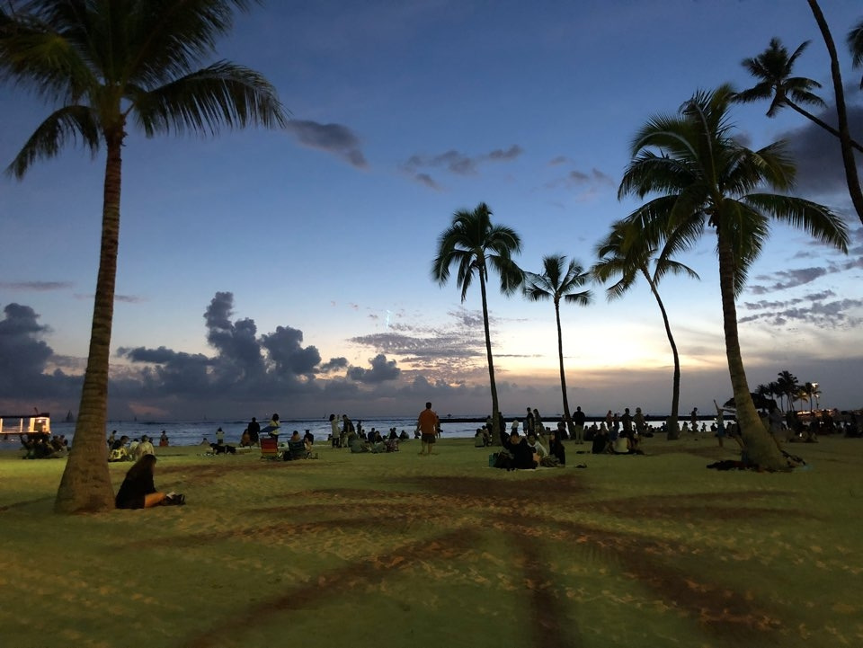 저녁도 먹고 불꽃놀이도 볼 겸 6시 20분부터 힐튼 하와이안 빌리지 내 ‘트로픽스 바 앤 그릴’에서 대기했다. 운 좋게 7시경 레스토랑에 착석해 피자와 햄버거, 거기 칵테일까지 곁들여 먹었고, 포만감이 느껴질 때쯤 불꽃이 터지기 시작했다. 오아후 세 번째 방문 만에 불꽃놀이를 본다는 친구 역시 만족스러워했다. 짧은 불꽃놀이가 끝나고 사람들은 우-르르 자리를 떠났다. 시끌벅적하던 카하나모쿠 비치가 한산해졌다. 우리도 8시 5분경 레스토랑을 나섰다. 그러던 중 들린 한국어. 오아후로 첫 여행을 온 부부의 대화 내용은 이랬다.