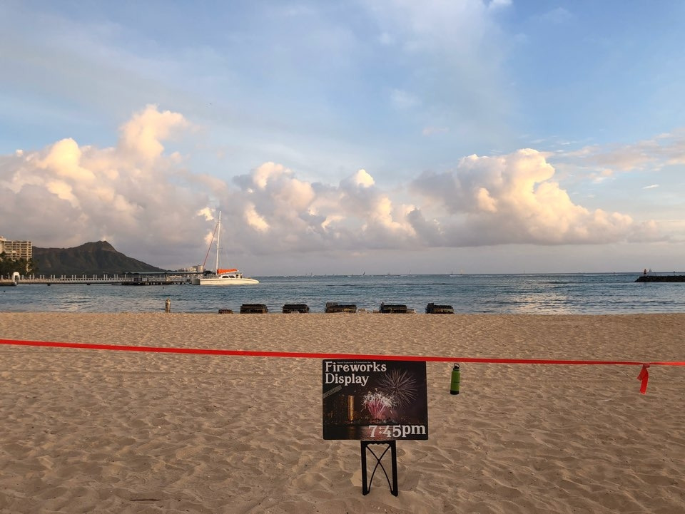 그날도 역시나 많은 사람이 모였다. 인공 라군 앞 주차장은 불꽃놀이 시작 훨씬 전부터 만차였고, 사람들도 서둘러 저녁 식사를 마치고 카하나모쿠 비치에 자리를 잡았다. 불꽃놀이가 열리는 비치 주변으로 사람이 걸터앉을 수 있는 곳은 이미 만석이다. 이 와중에 장사하겠다며 레이를 판매하는 셀러들은 금요일 저녁 흥분된 여행객의 지갑을 살짝 열고 있다.